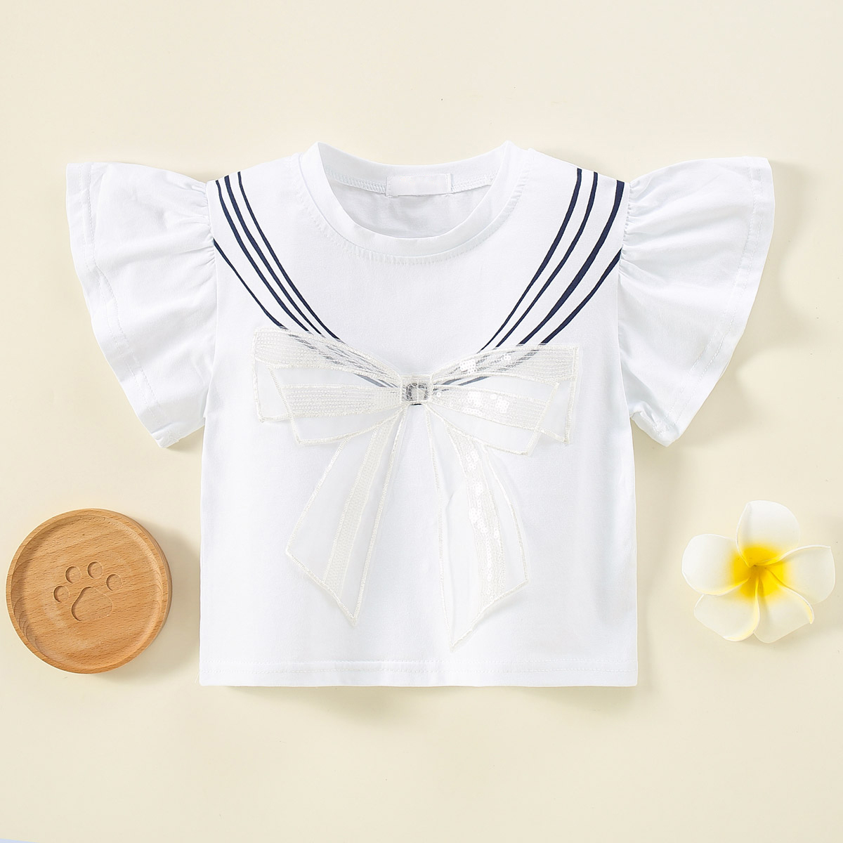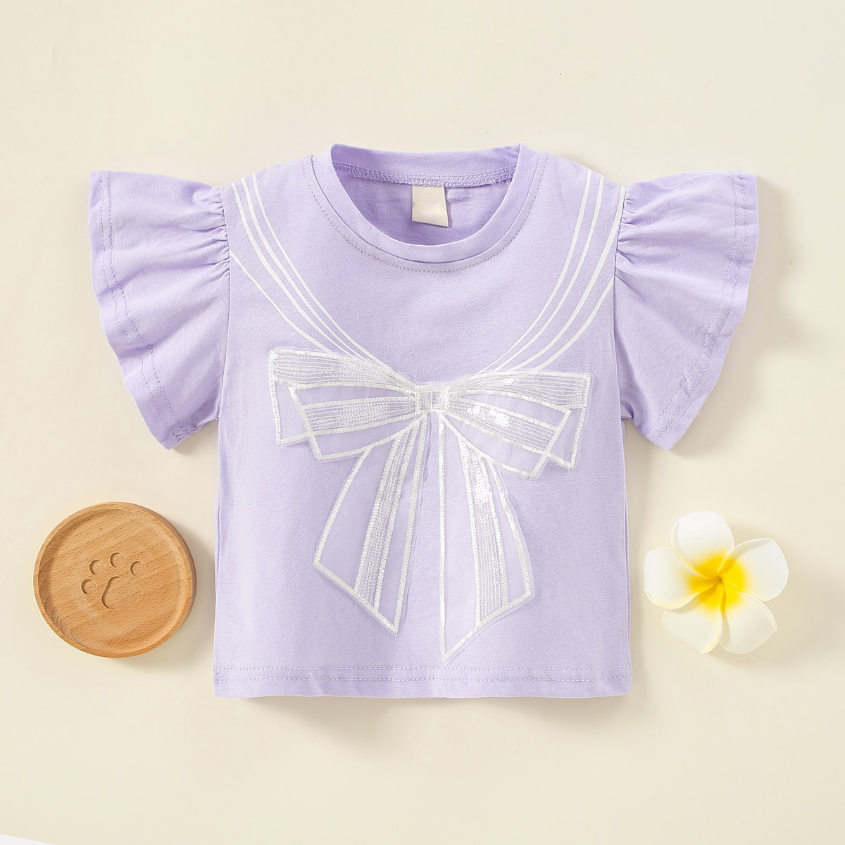 Toddler Girl Sweet Bow Knot Decor Ruffle Sleeve T-shirt Wholesale
