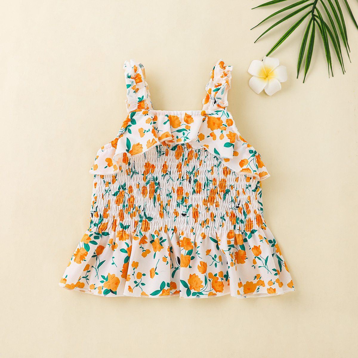 Toddler Girl Sweet Floral Ruffle Vest Top & Shorts Wholesale