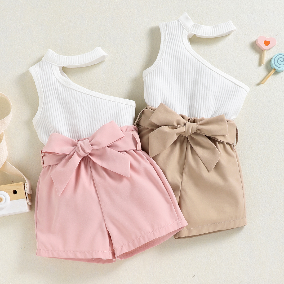 Toddler Girl Sweet Halter Neck Hollow Out Top & Shorts Wholesale