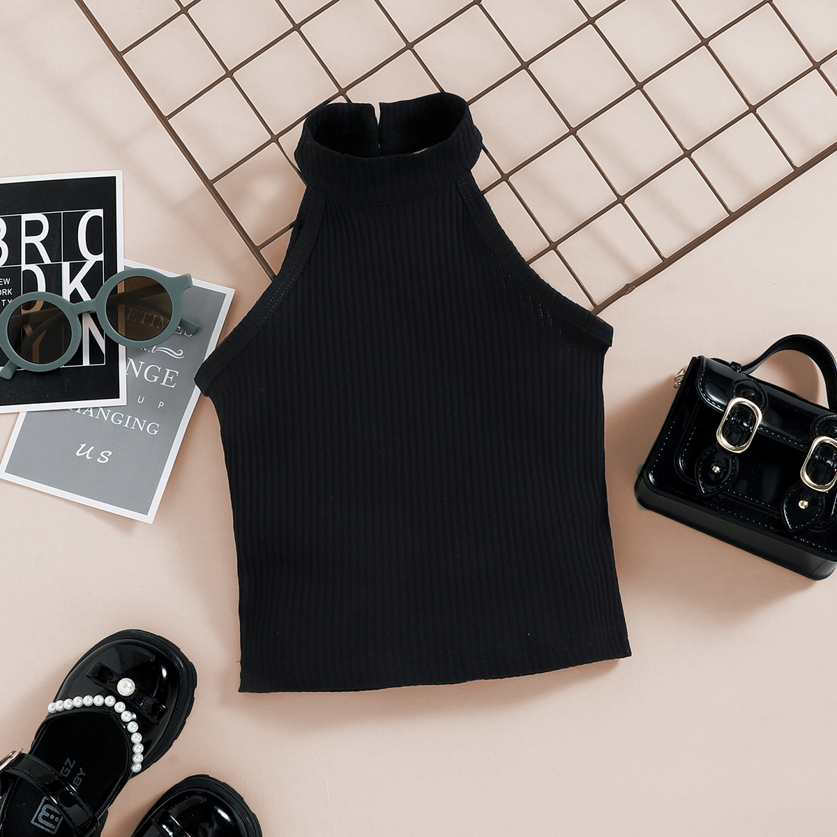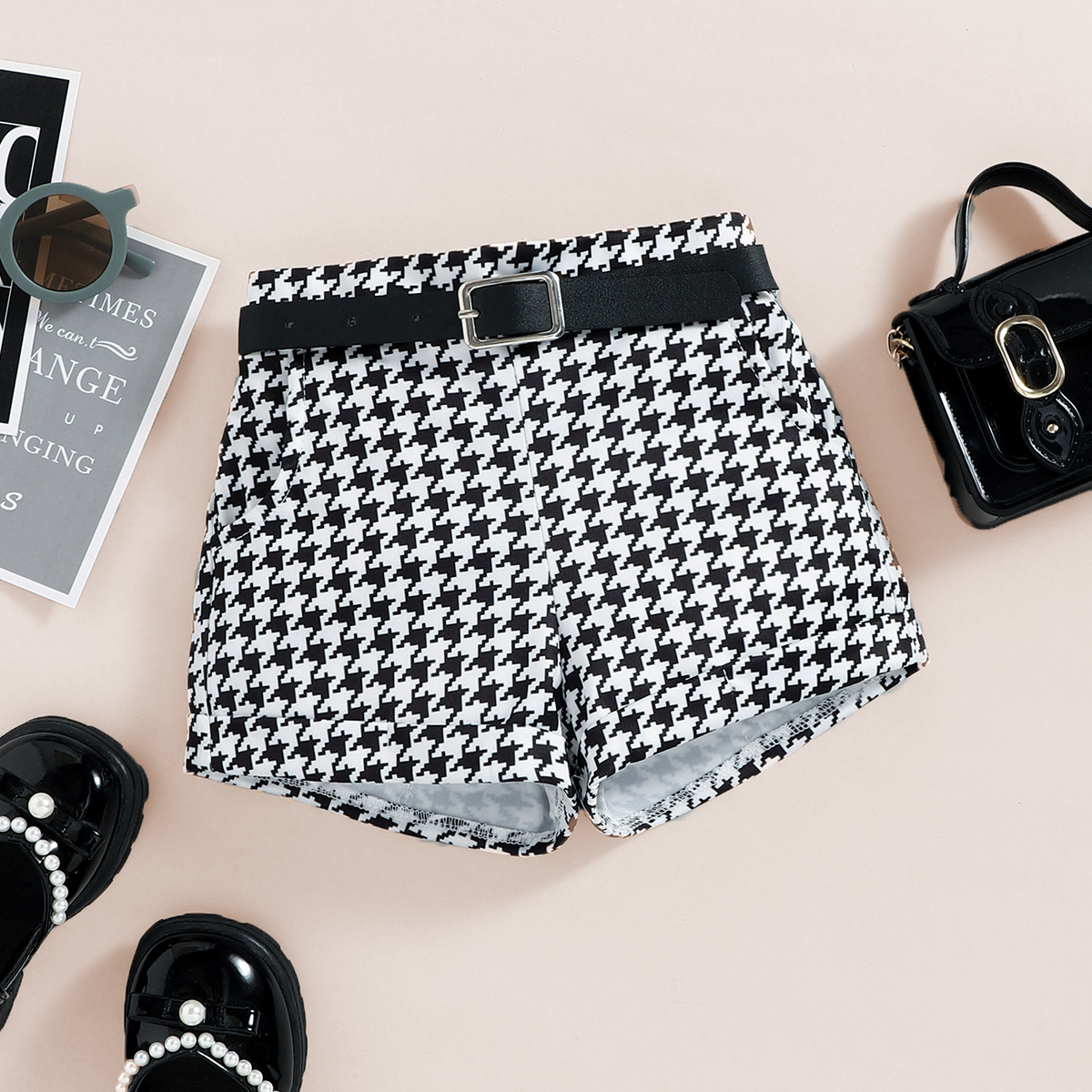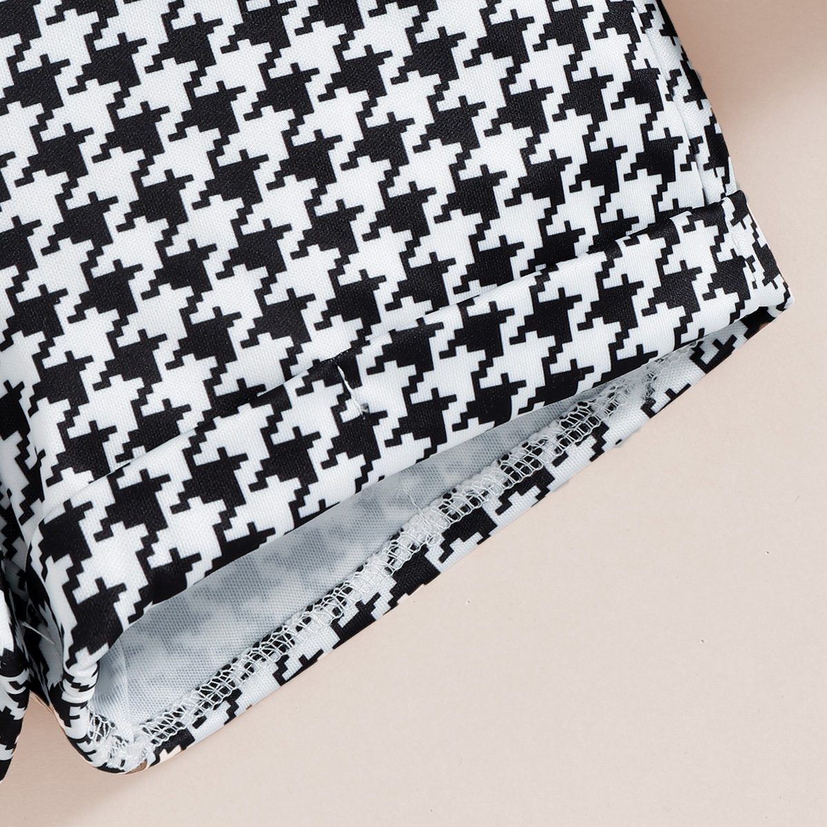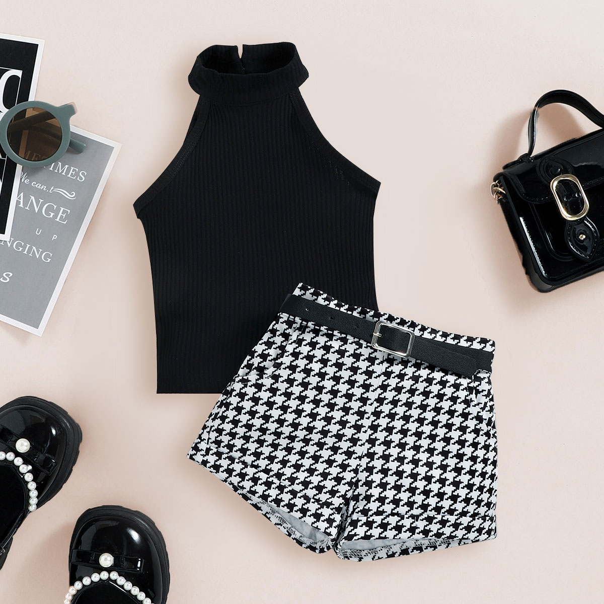 Toddler Girls Collar Stripes Houndstooth Sleeveless Top & Houndstooth Shorts Wholesale