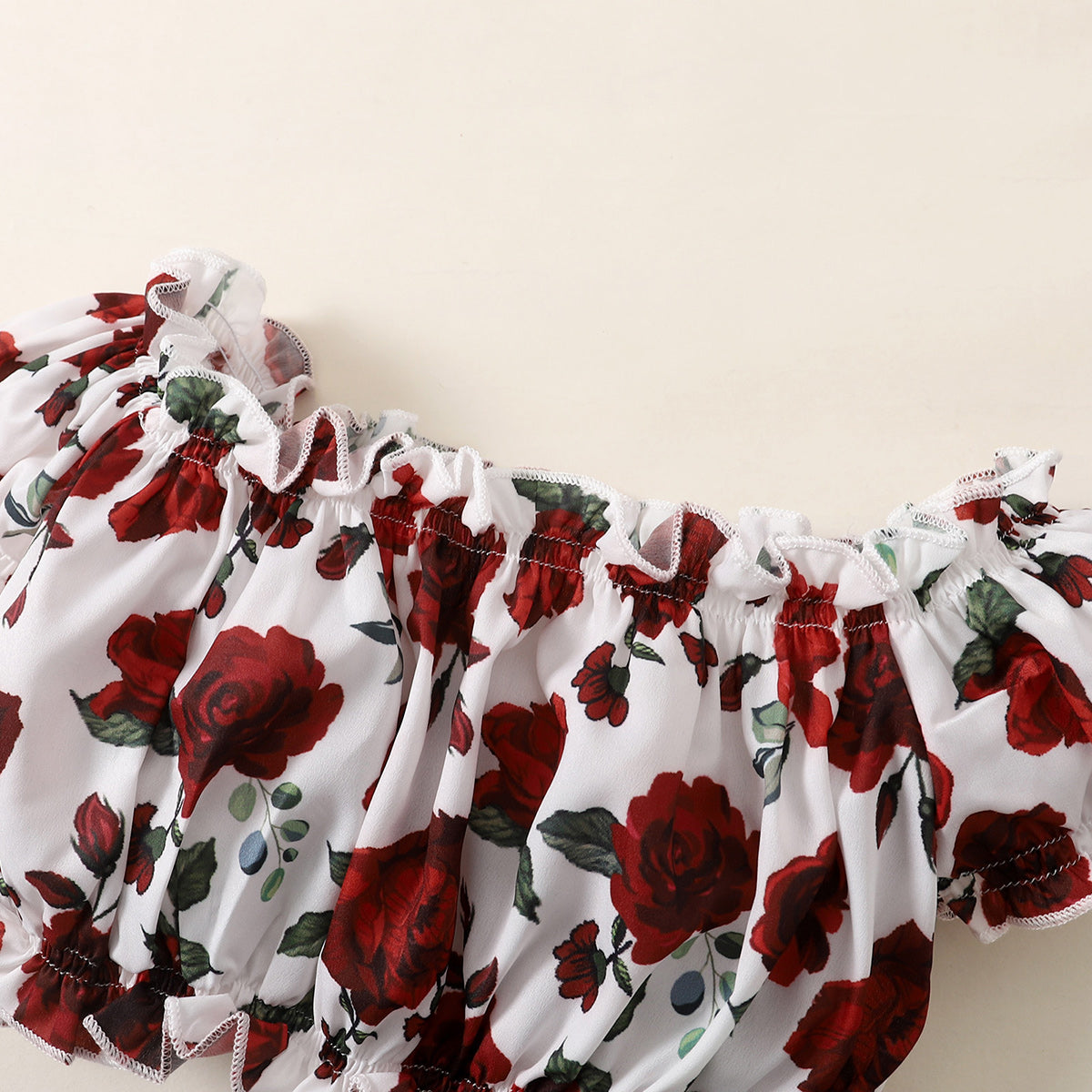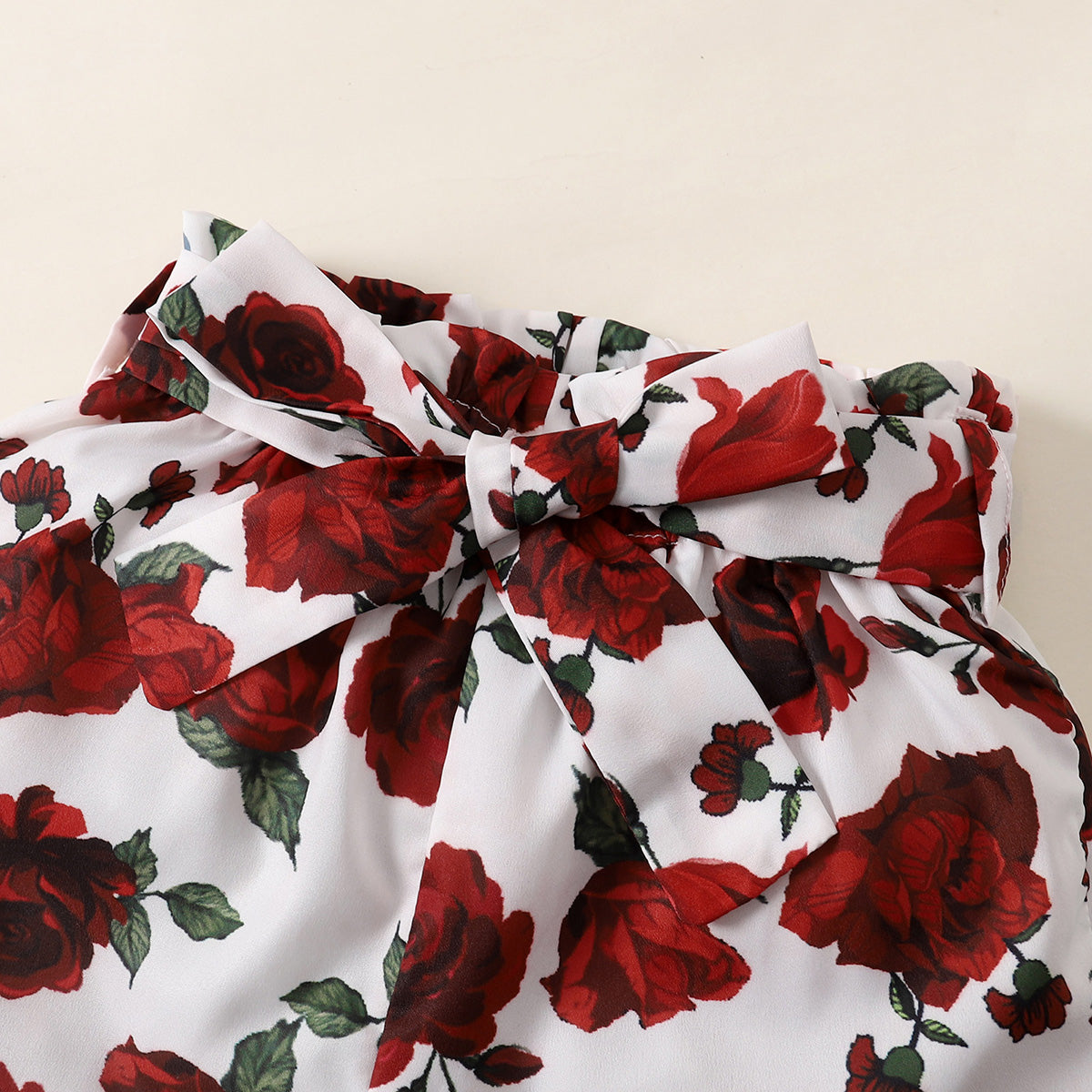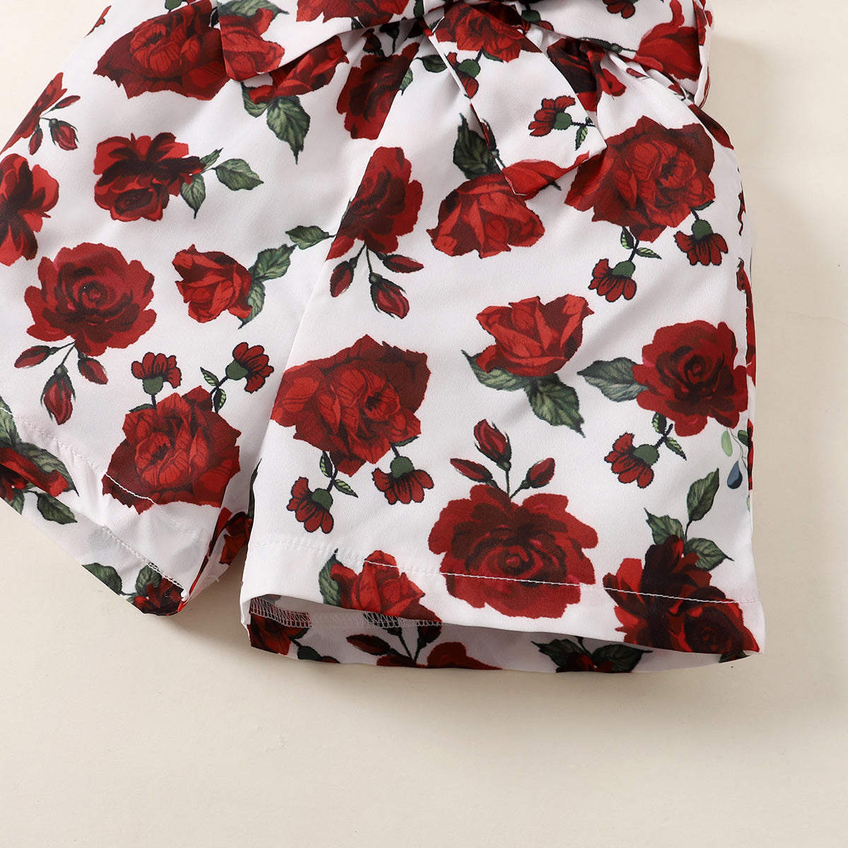 Toddler Girls Slash Neck Floral Ruffled Sleeve Top & Shorts Wholesale