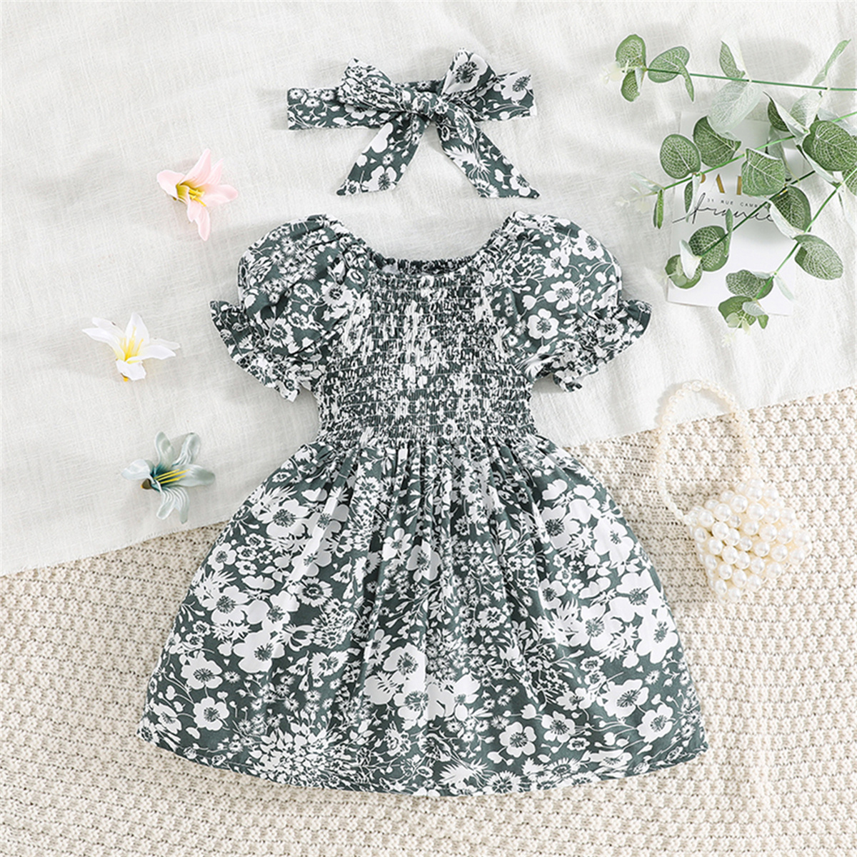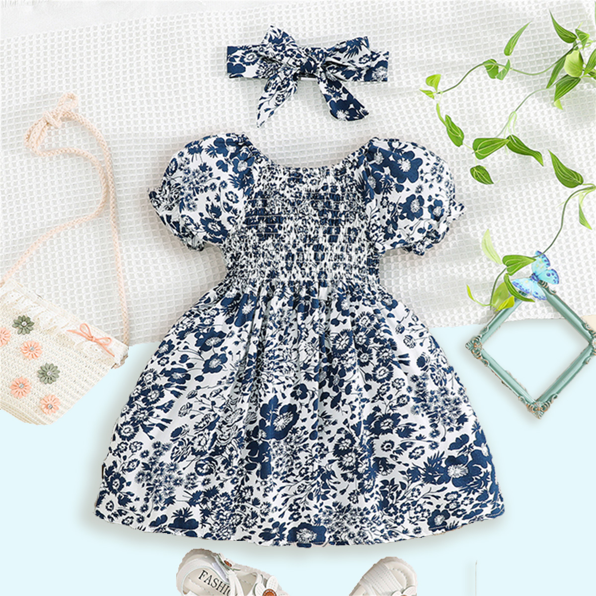 Toddler Girls Slash Neck Sweet Floral Dress Wholesale
