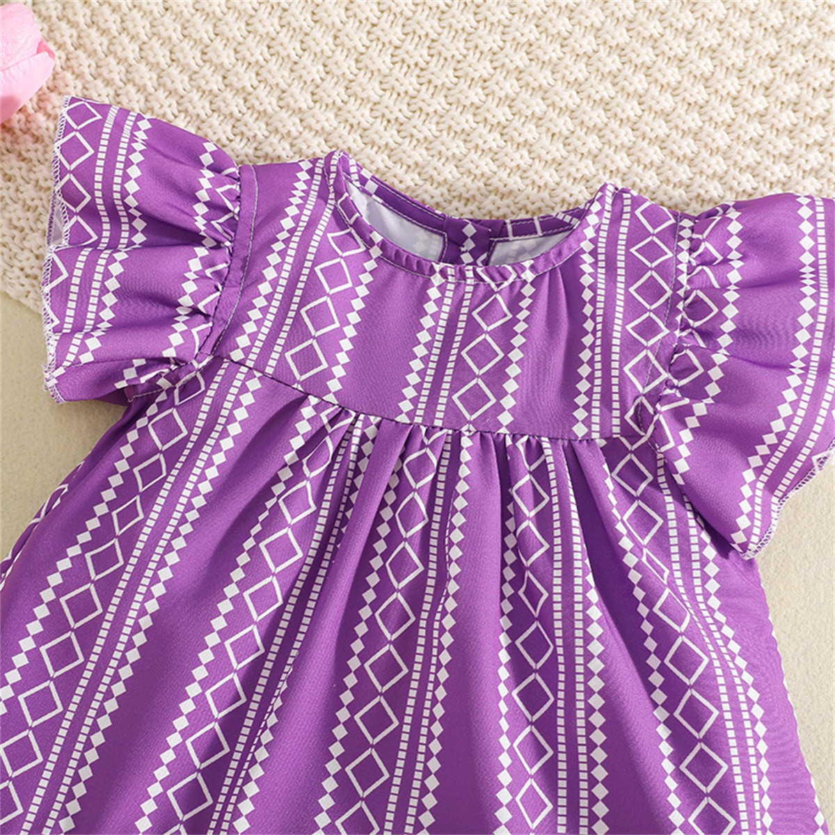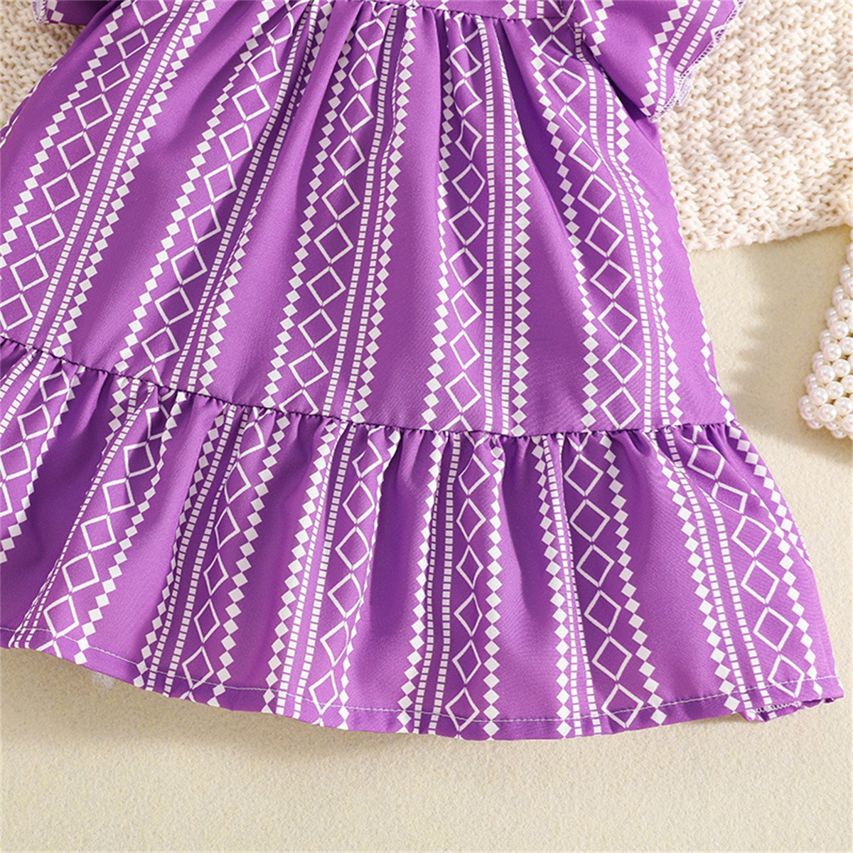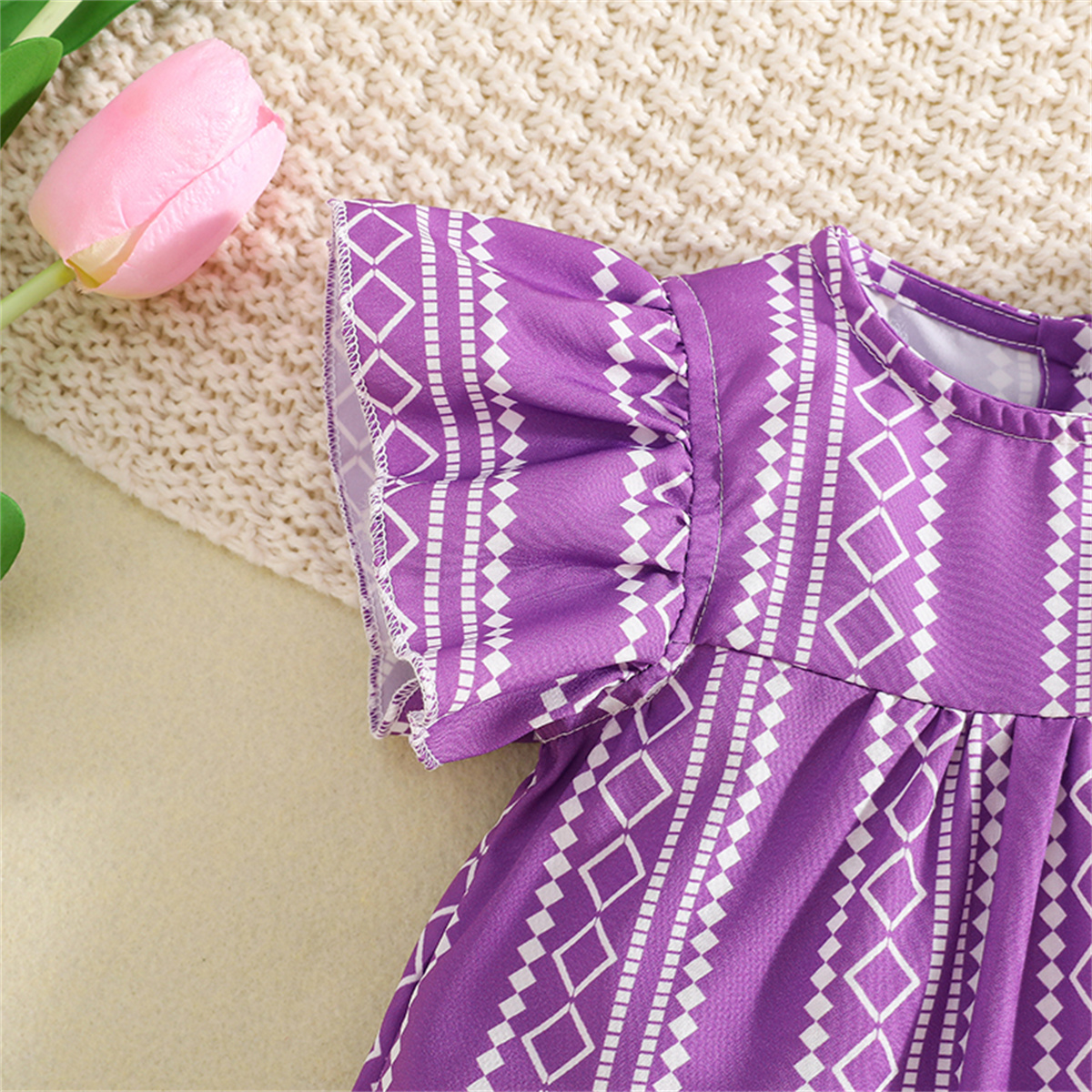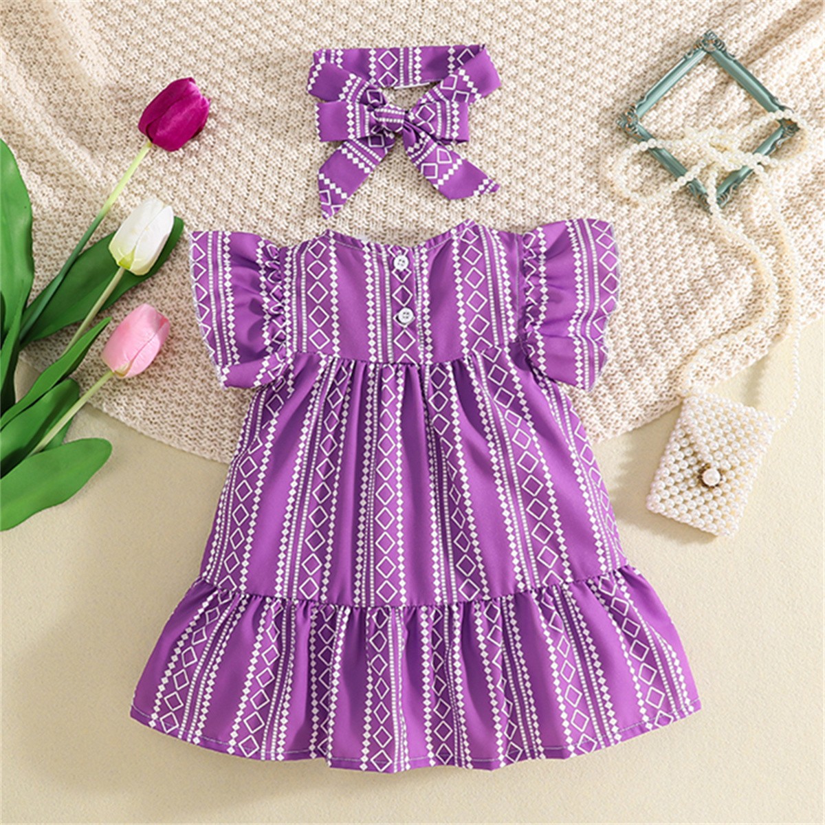 Toddler Girls Stripes Solid Boho Round Neck Dress Wholesale