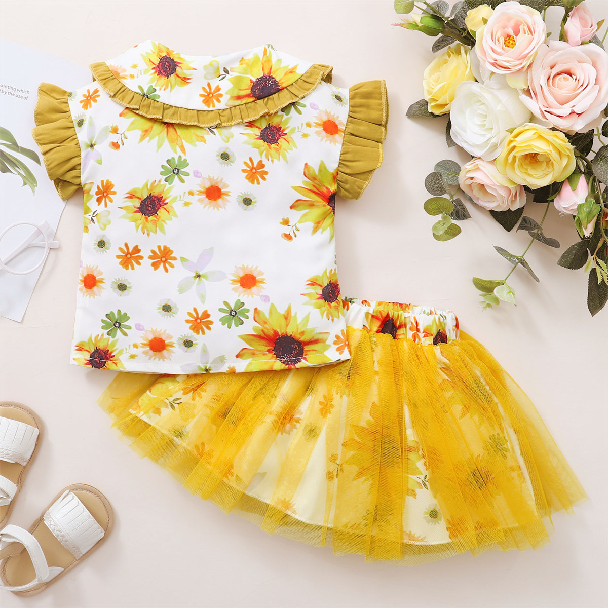 Toddler Girls Tropical Strawberry Print Ruffled Sleeve Top & Skirt Wholesale