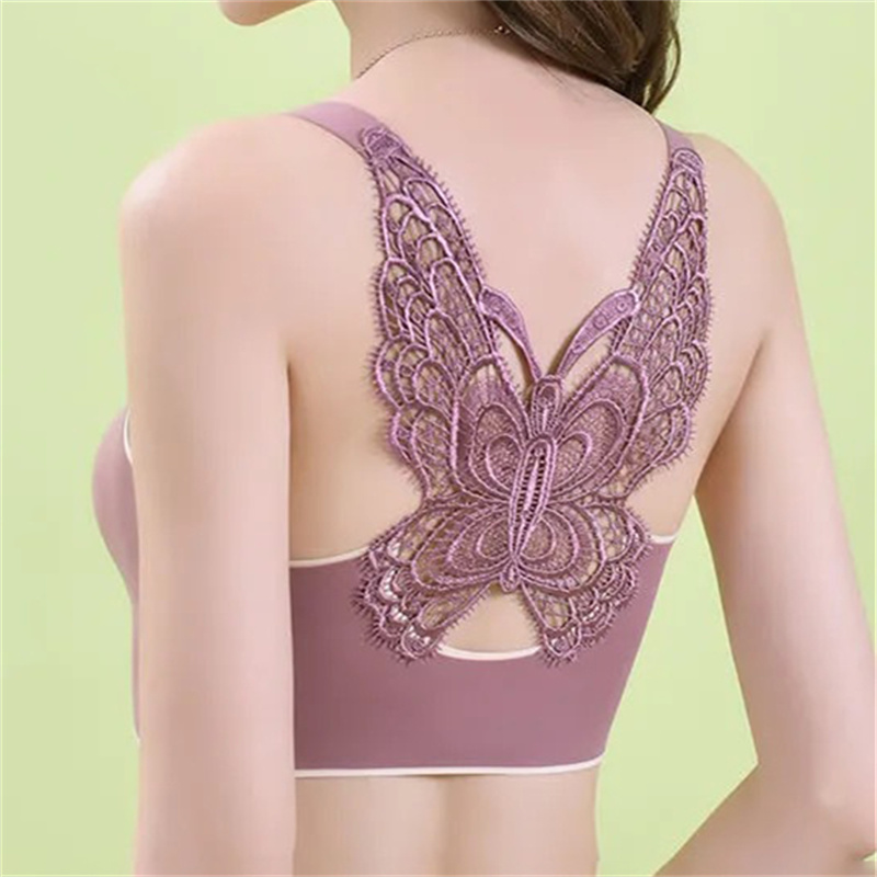 Women Lace Butterfly No Trace Breathable Ice Silk Sports Emulsion Bra Wholesale