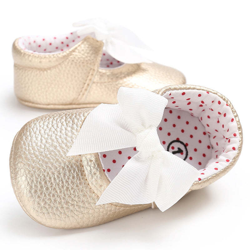 Baby Girl's Sweet Golden Bownot Decoration Prewalker Shoes Wholesale