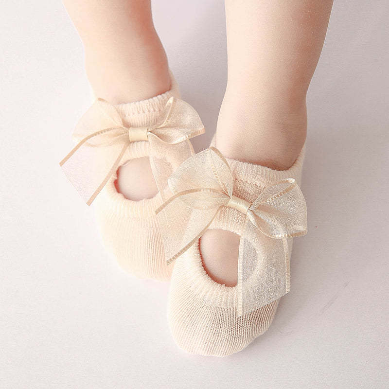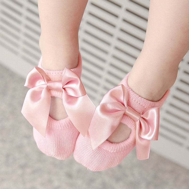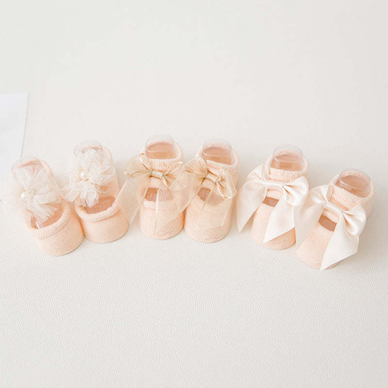 3-piece Cotton Bowknot Decor Antiskid Baby Socks Wholesale