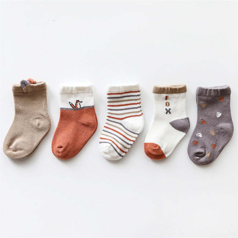 5-Pieces Cotton Cartoon Socks For Children's Wholesale