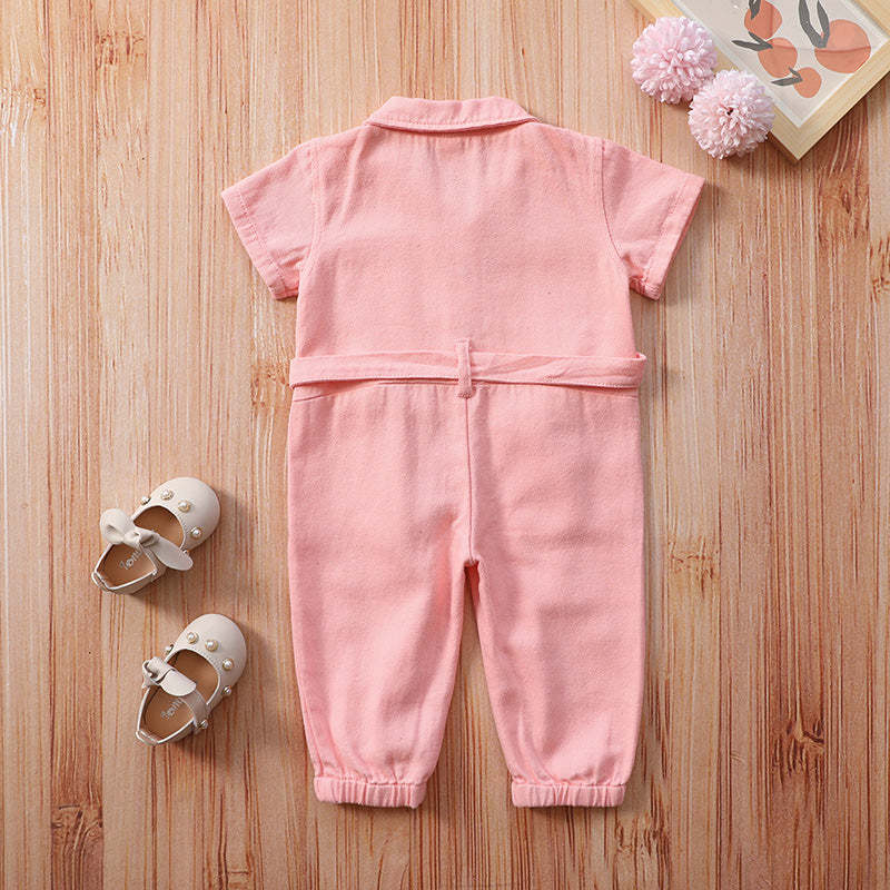 [ANASALA FAMILY PICK] Toddler Girl Belted Denim Jumpsuit Wholesale