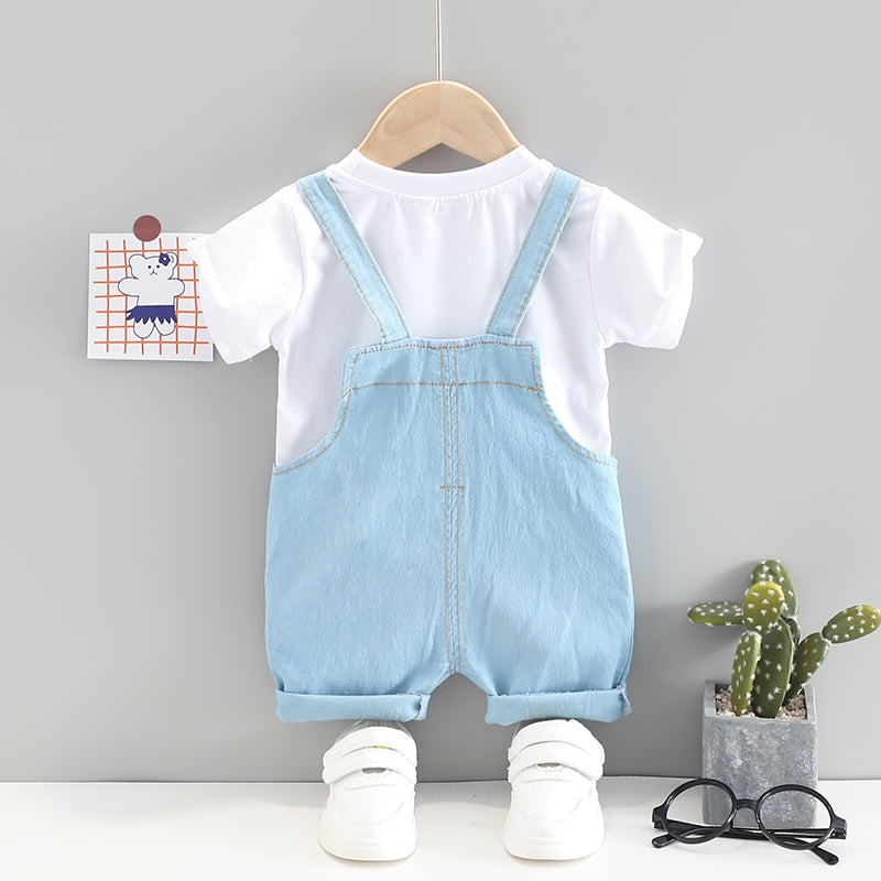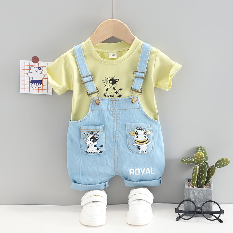 Toddler Boy Cartoon Cow T-shirt & Denim Overalls Wholesale