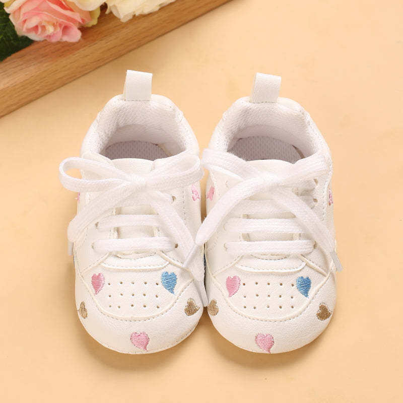 Baby Heart-shaped Embroidery Lace Up Front Shoes Wholesale
