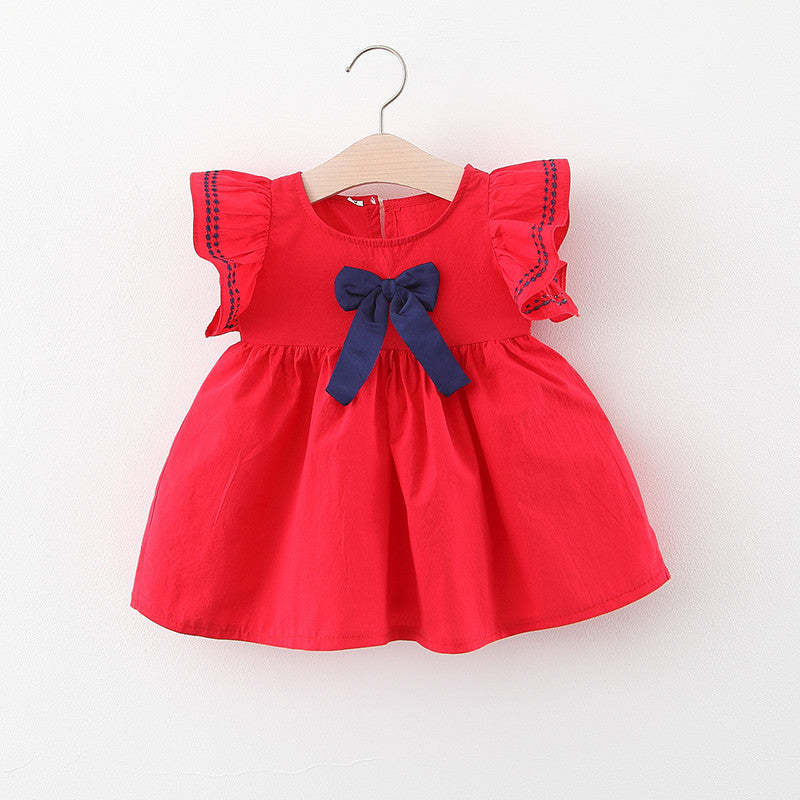 Toddler Girl Bow Decor Ruffle Armhole Floral Dress Wholesale