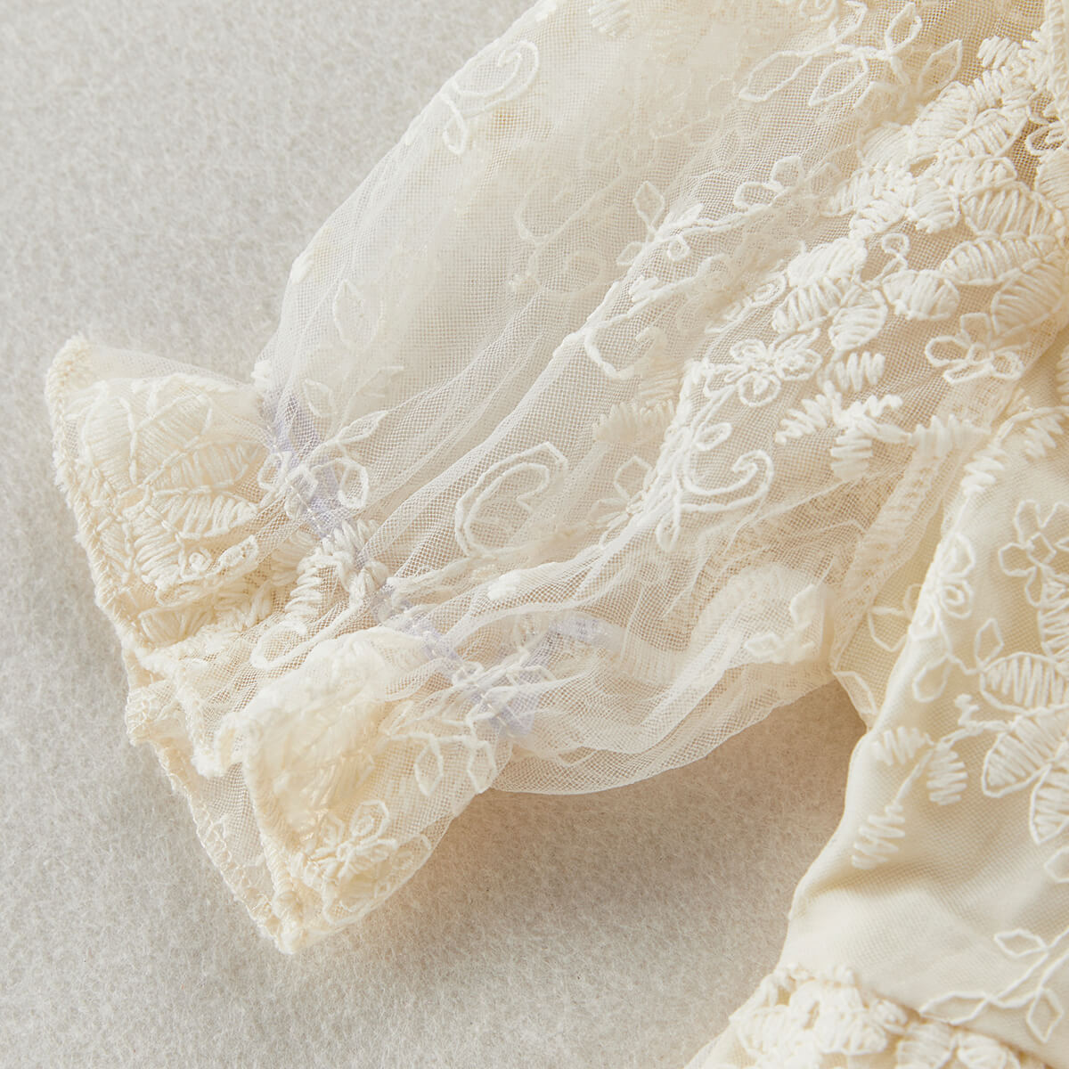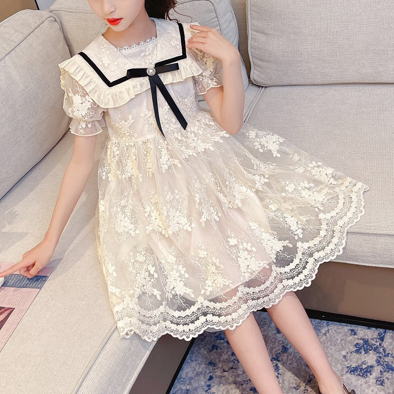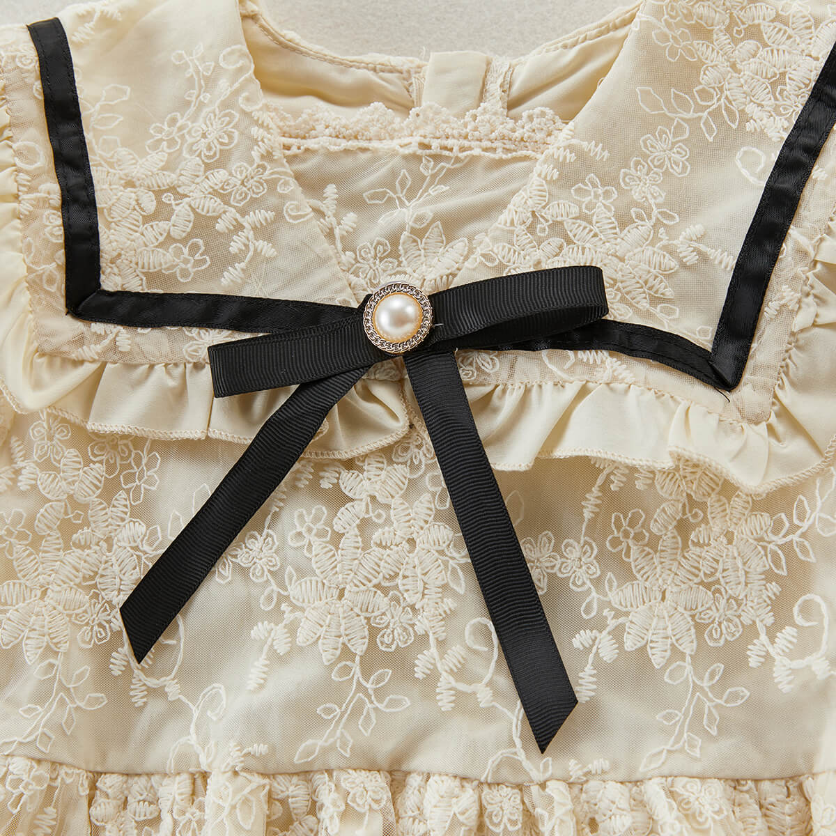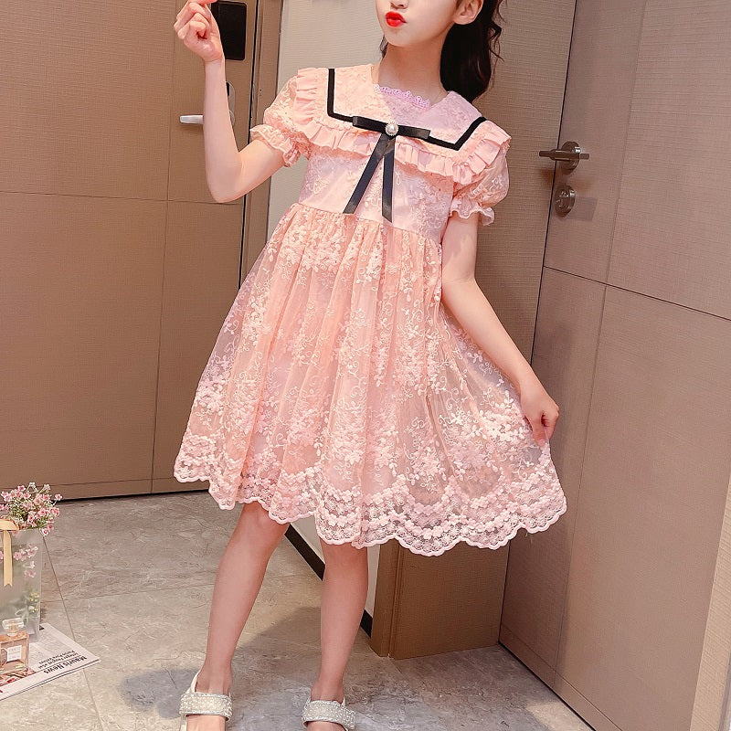 Kid Girl Bowknot Decor Lace Braided Print Mesh Dress Wholesale