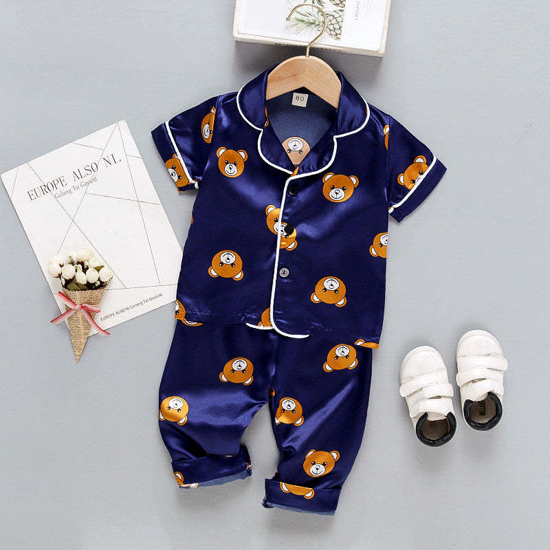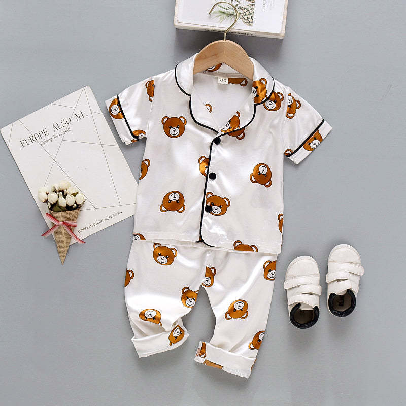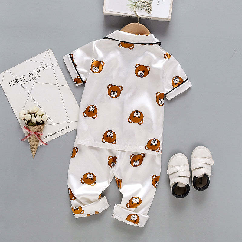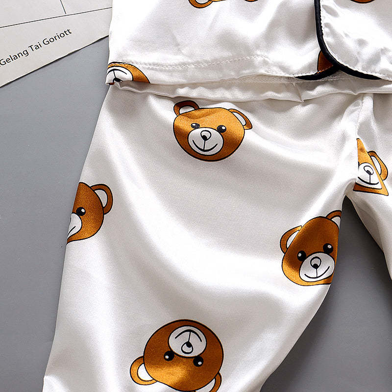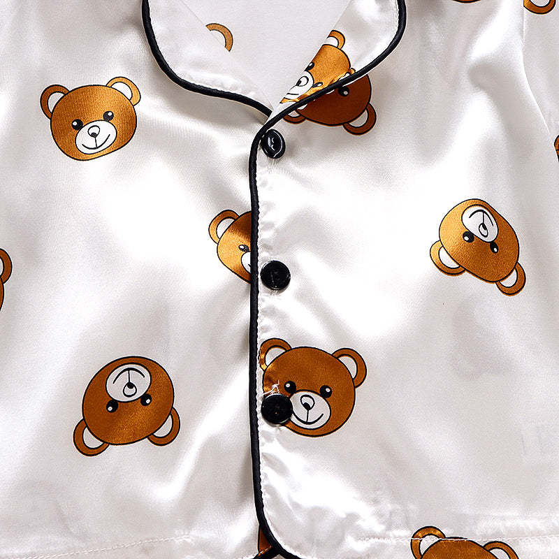 Toddler Boy Cartoon Bear Print Lapel Pajama Top & Pants Wholesale