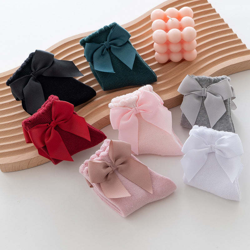 Toddler Girl Bowknot Decor Solid Color Socks Wholesale