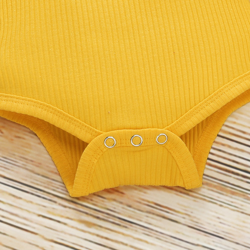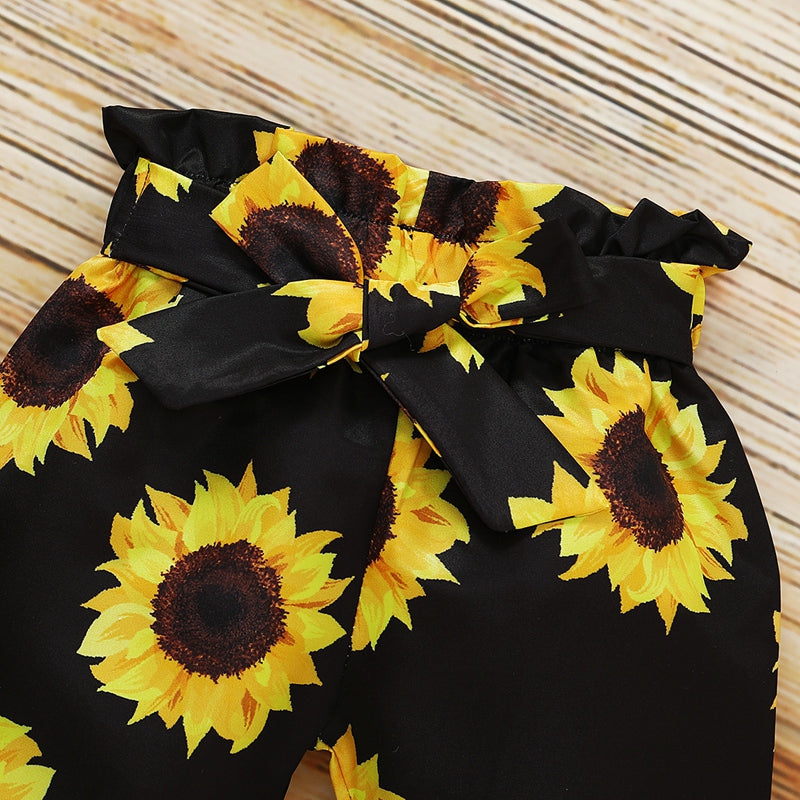 Baby Girl Sweet Solid Ruffle Romper Floral Print Pants Headband Three-Pieces Wholesale