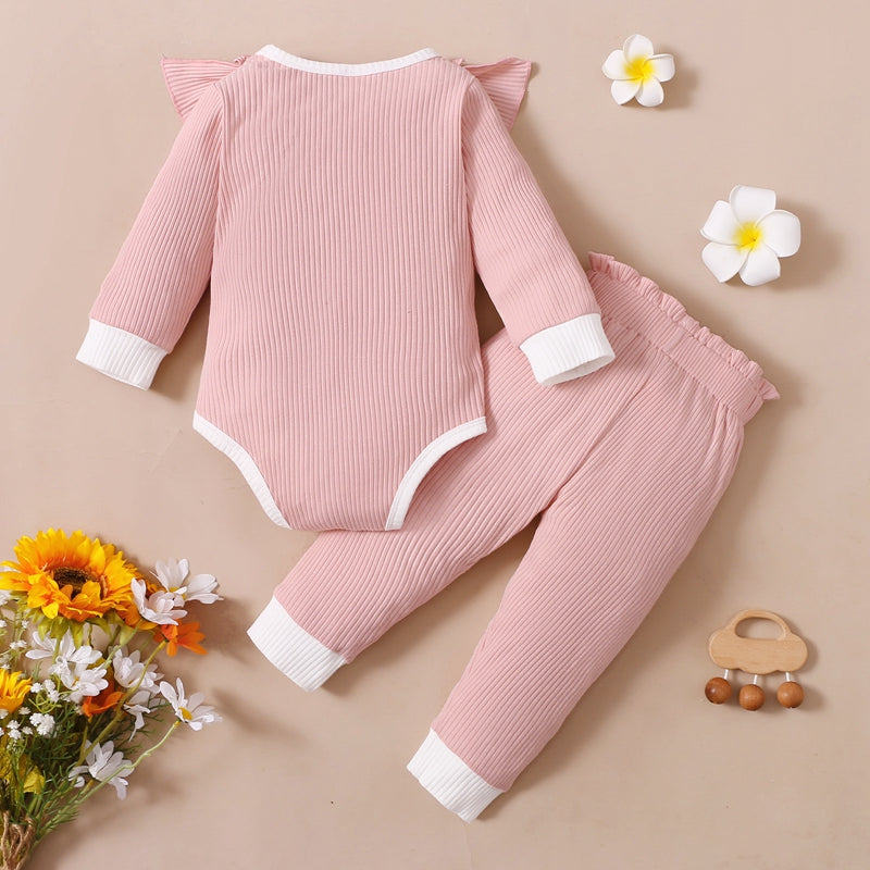 Baby Girl Sweet Ruffle Long Sleeve Romper Two-piece Wholesale