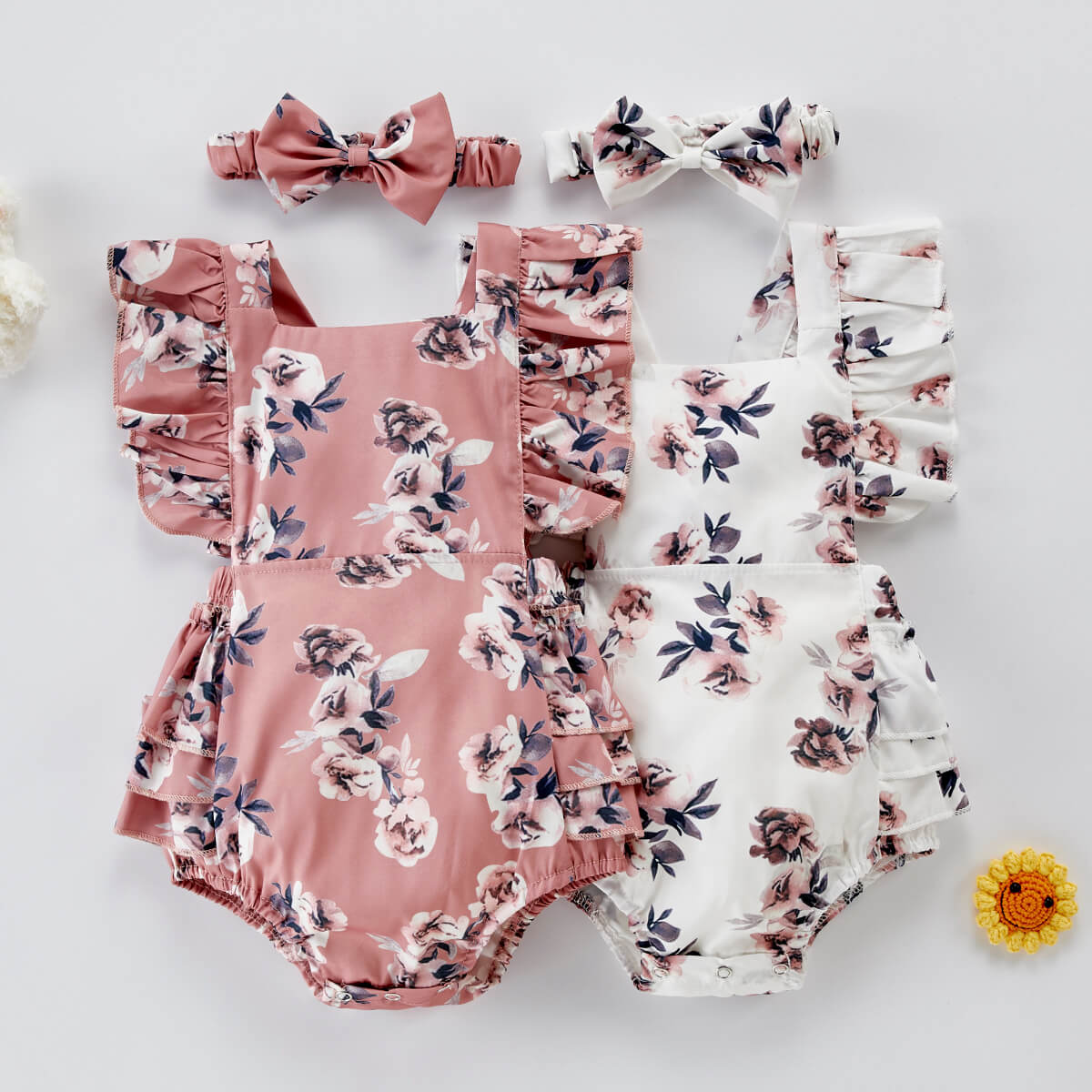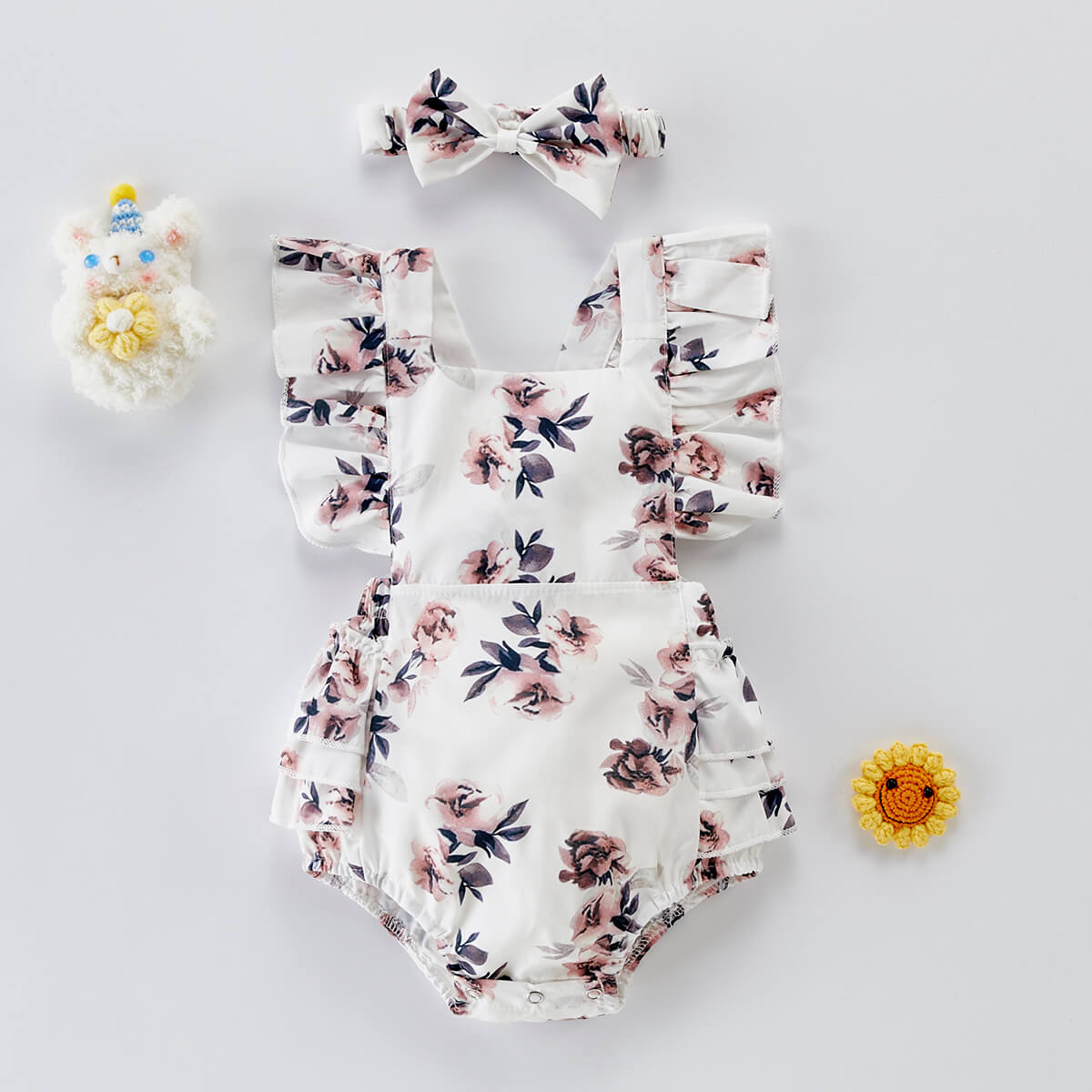 Baby Girl 2 Pieces Floral Pattern Ruffle-sleeveless Bodysuit & Headband Wholesale