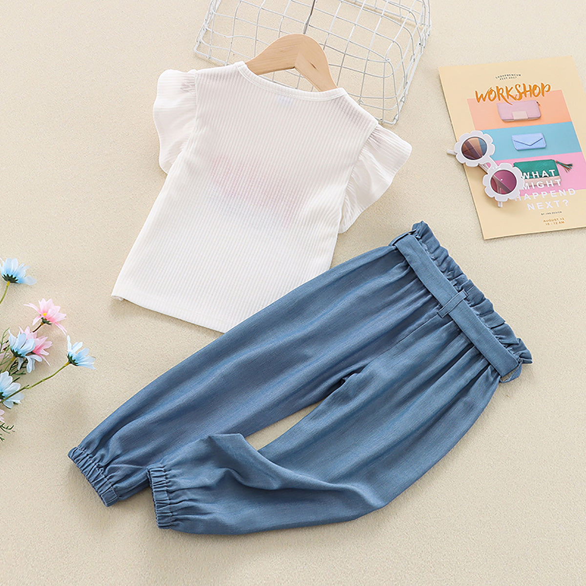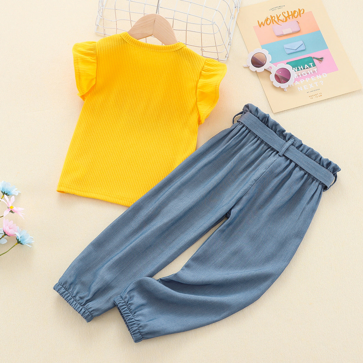 Toddler Girls Cotton Letter Color-block Top & Pants Suit Wholesale