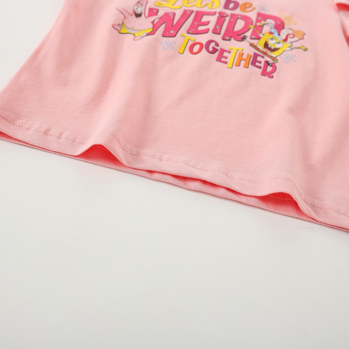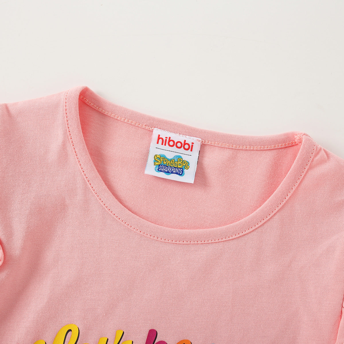 hibobi x SpongeBob Toddler Girl Casual Cute Letter Print Round Collar Fly Sleeves T-shirt Wholesale
