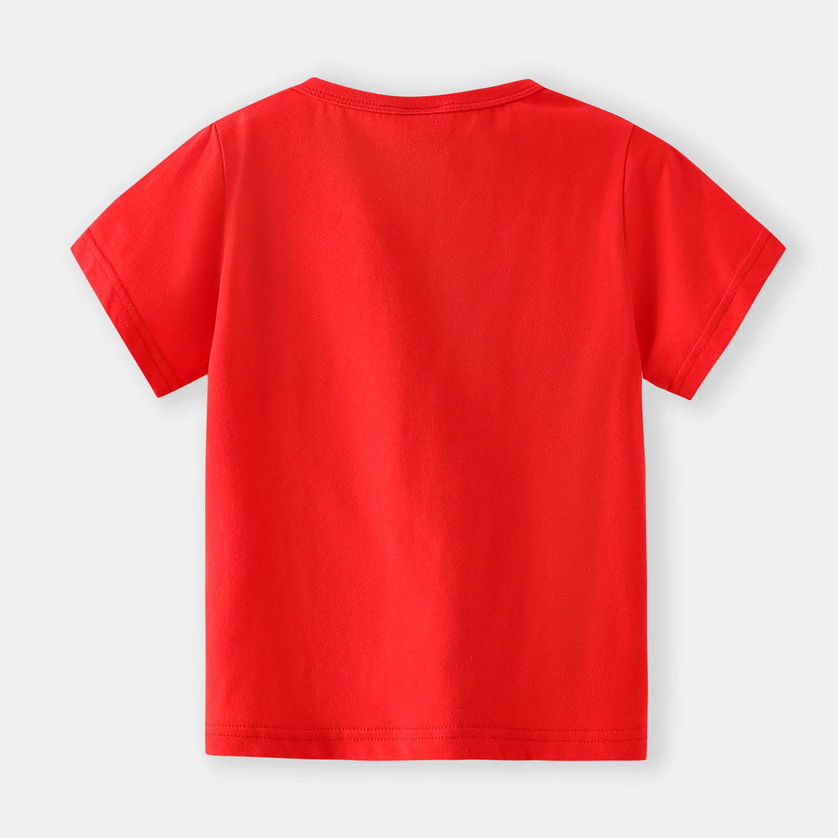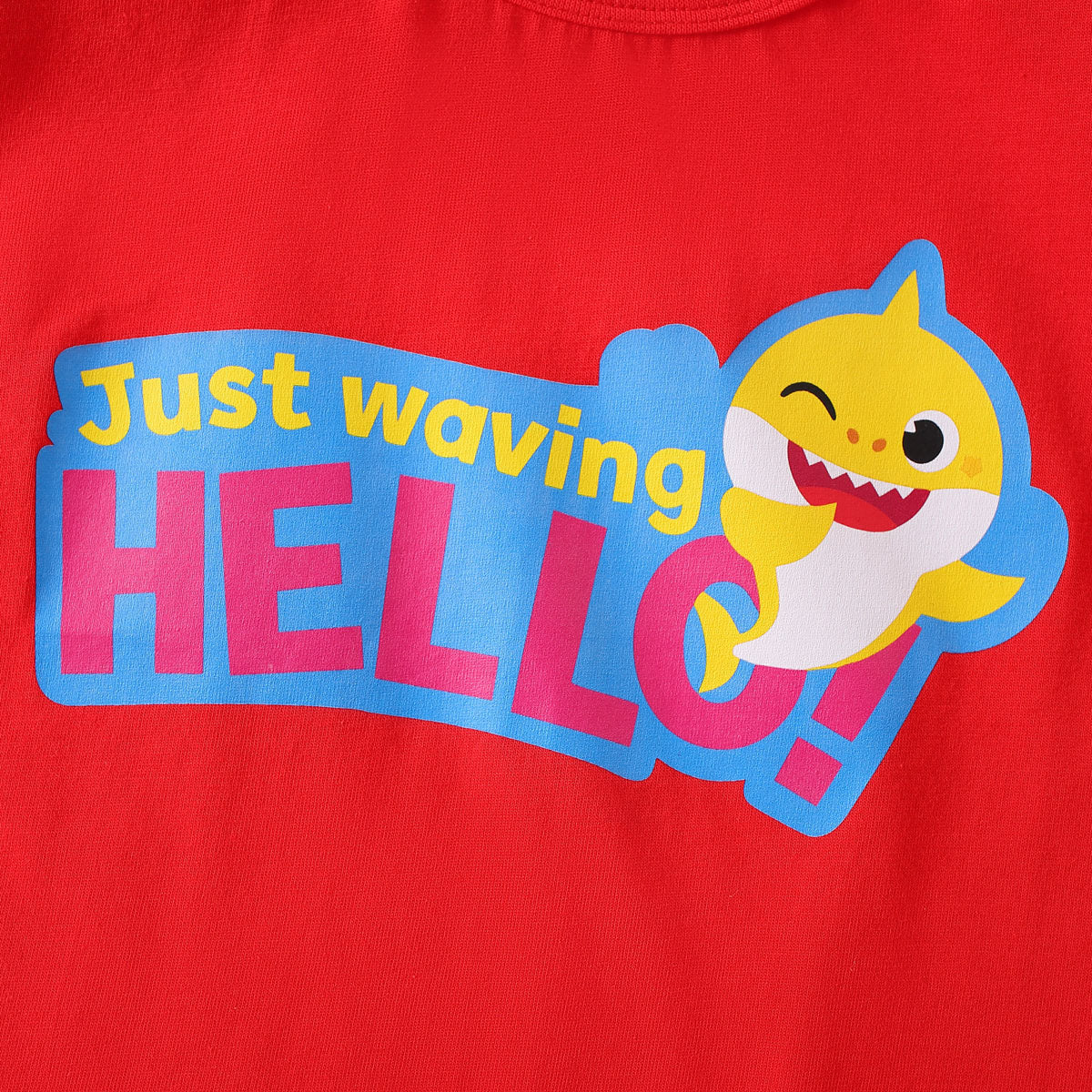 hibobi x Baby Shark Toddler Boy Casual Cute Letter Print Round Collar Cotton T-shirt Wholesale