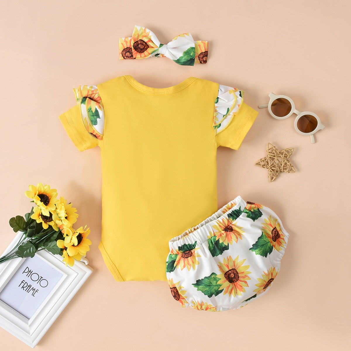 Baby Girl 3 Pieces Letter Floral Pattern Bodysuit & Shorts & Headband Wholesale