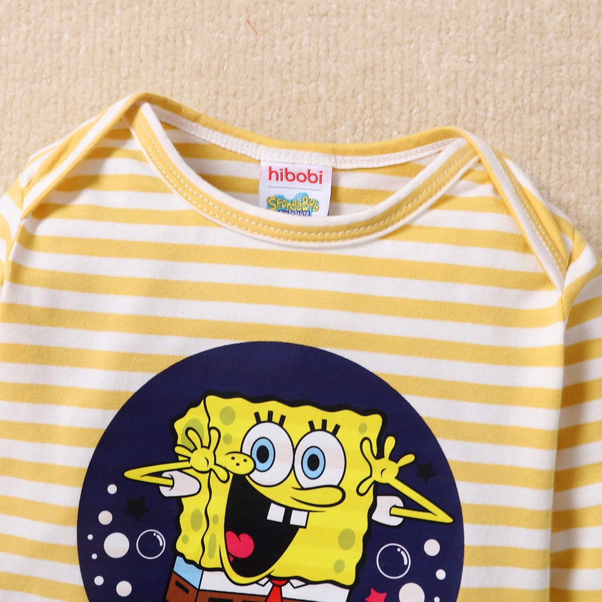 hibobi×Spongebob Baby Cute Print Stripe Long Sleeve Cotton Jumpsuit Wholesale