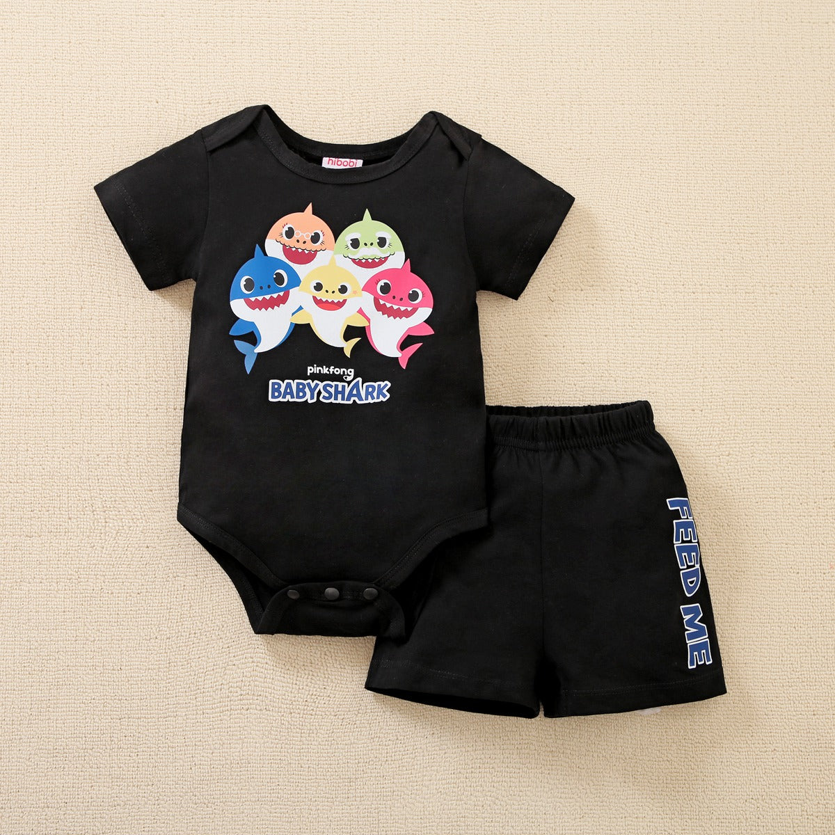 hibobi×IP Babyshark Baby Boys Cute Print Short Sleeve Cotton Jumpsuit & Shorts Wholesale