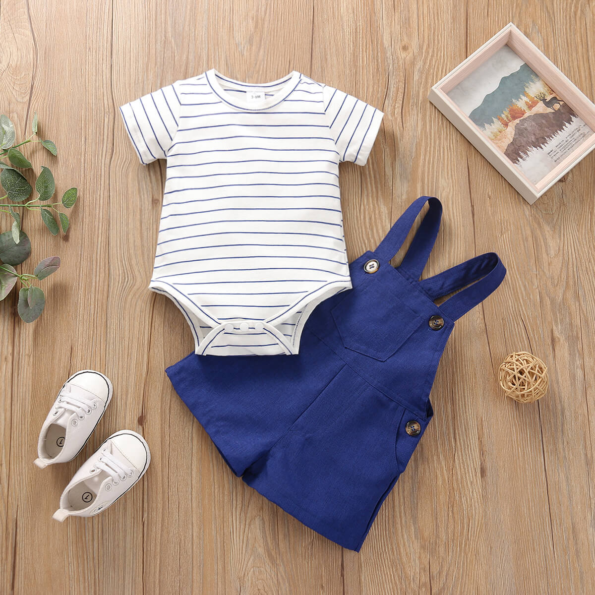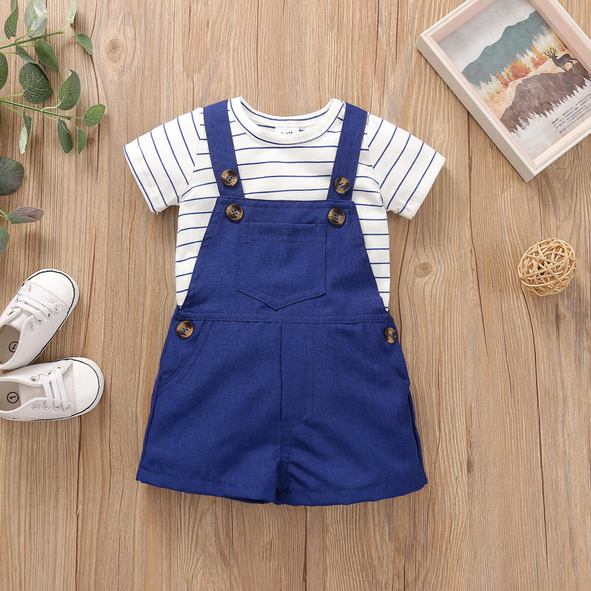 Baby Boy 2 Pieces Stripes Bodysuits & Suspender Shorts Wholesale
