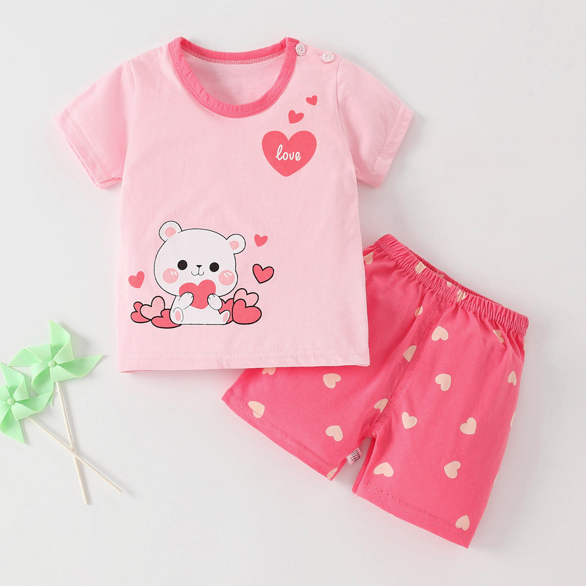 Toddler Girls Cotton Cartoon Color-block Top & Shorts Pajamas Sets Wholesale