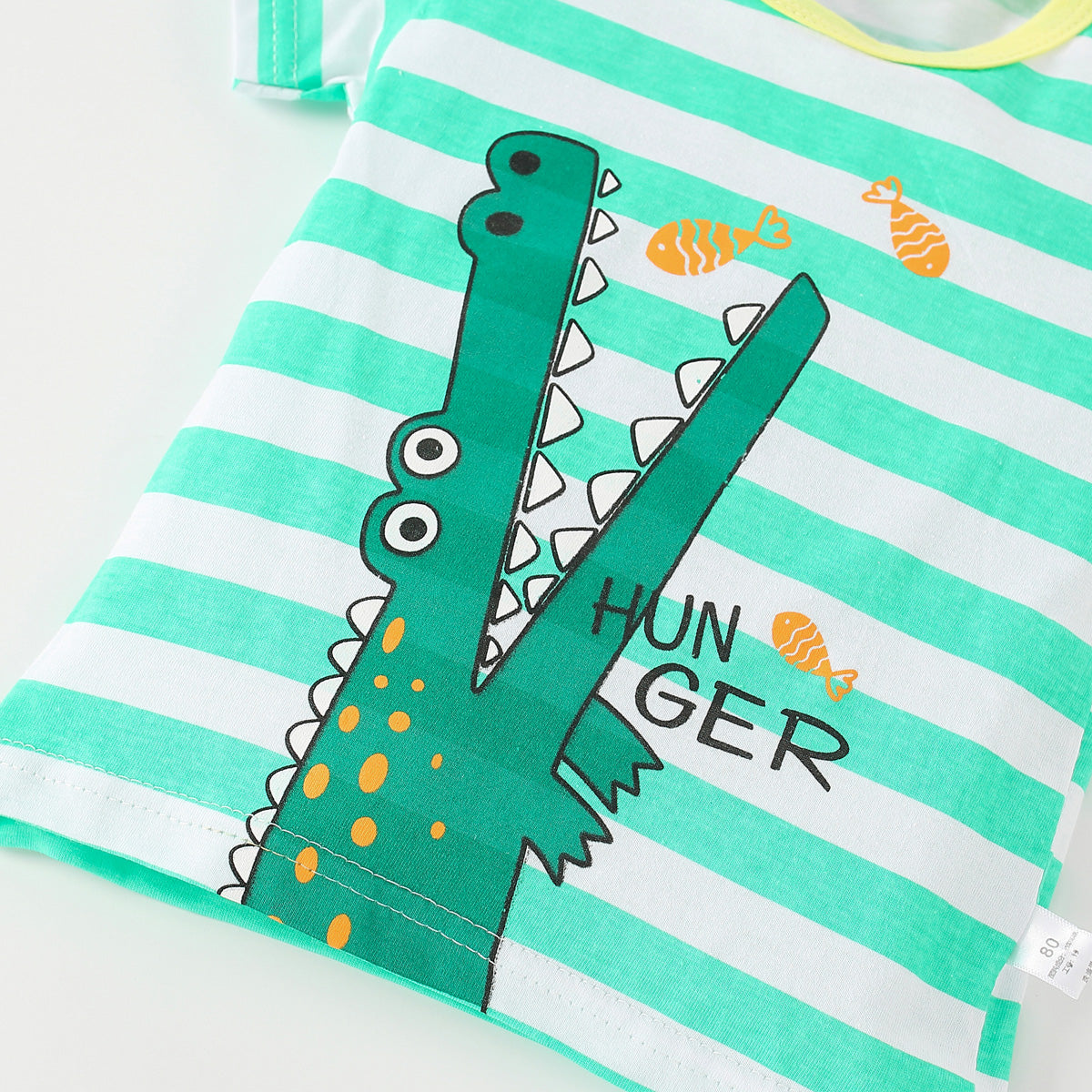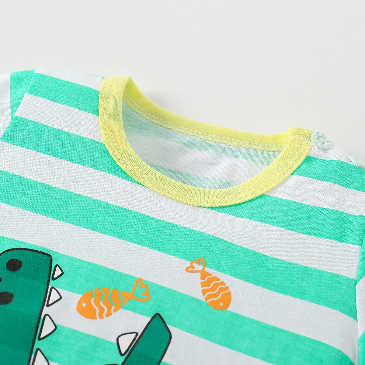 Toddler Boy Animal Stripes Color-block Bear Top & Shorts Pajamas Sets Wholesale