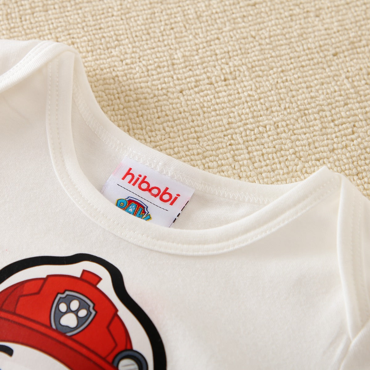 hibobi×PAW Patrol Baby boy Cute Cartoon Print Short Sleeve Bodysuit and Cute Red Stripe Pants Set Wholesale