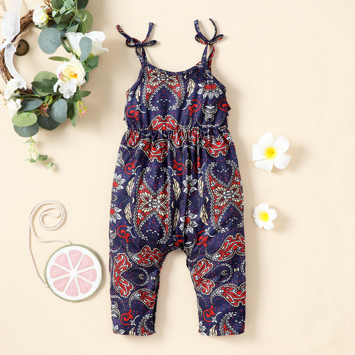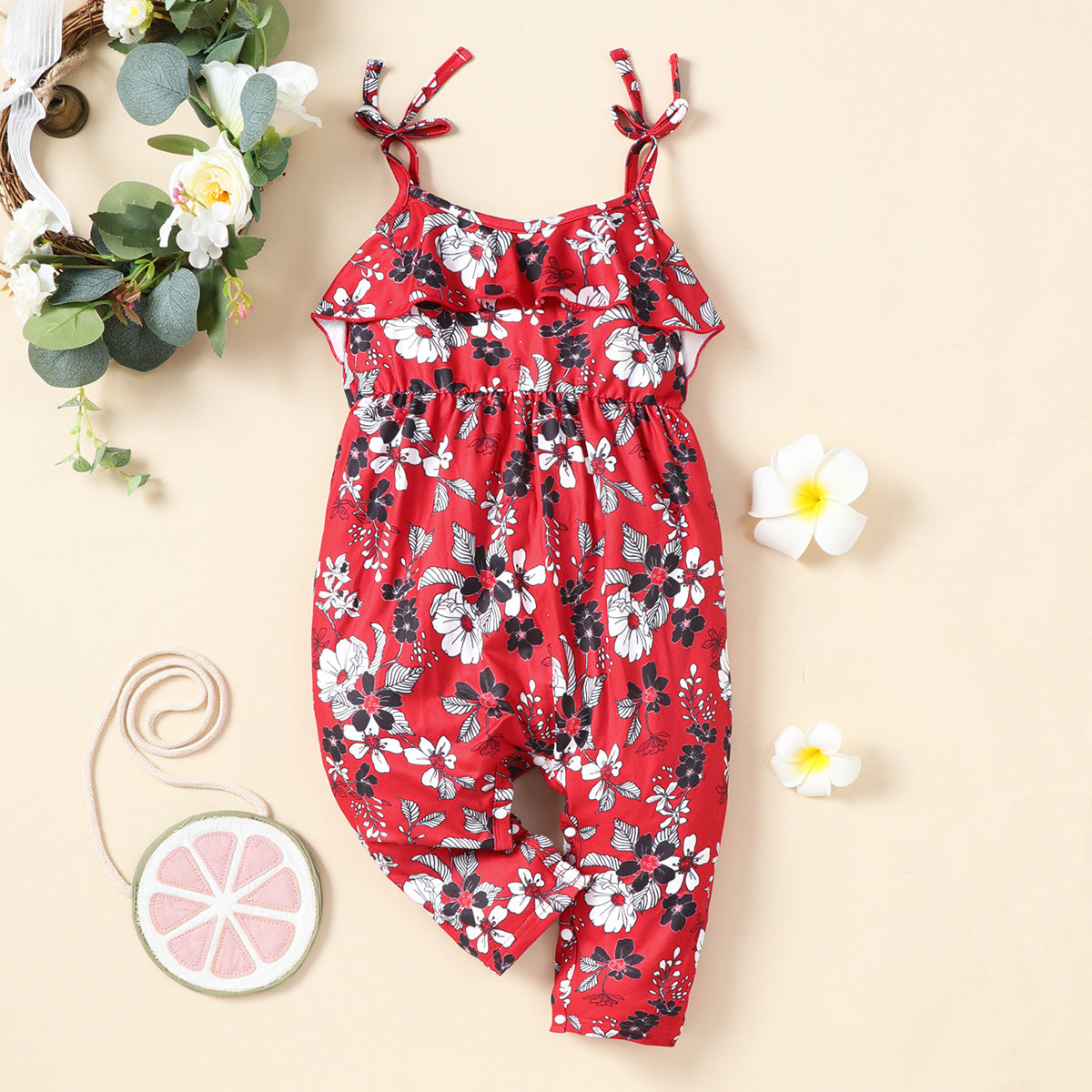 Baby Girl Ruffle Tropical Print Suspenders Jumpsuit Wholesale