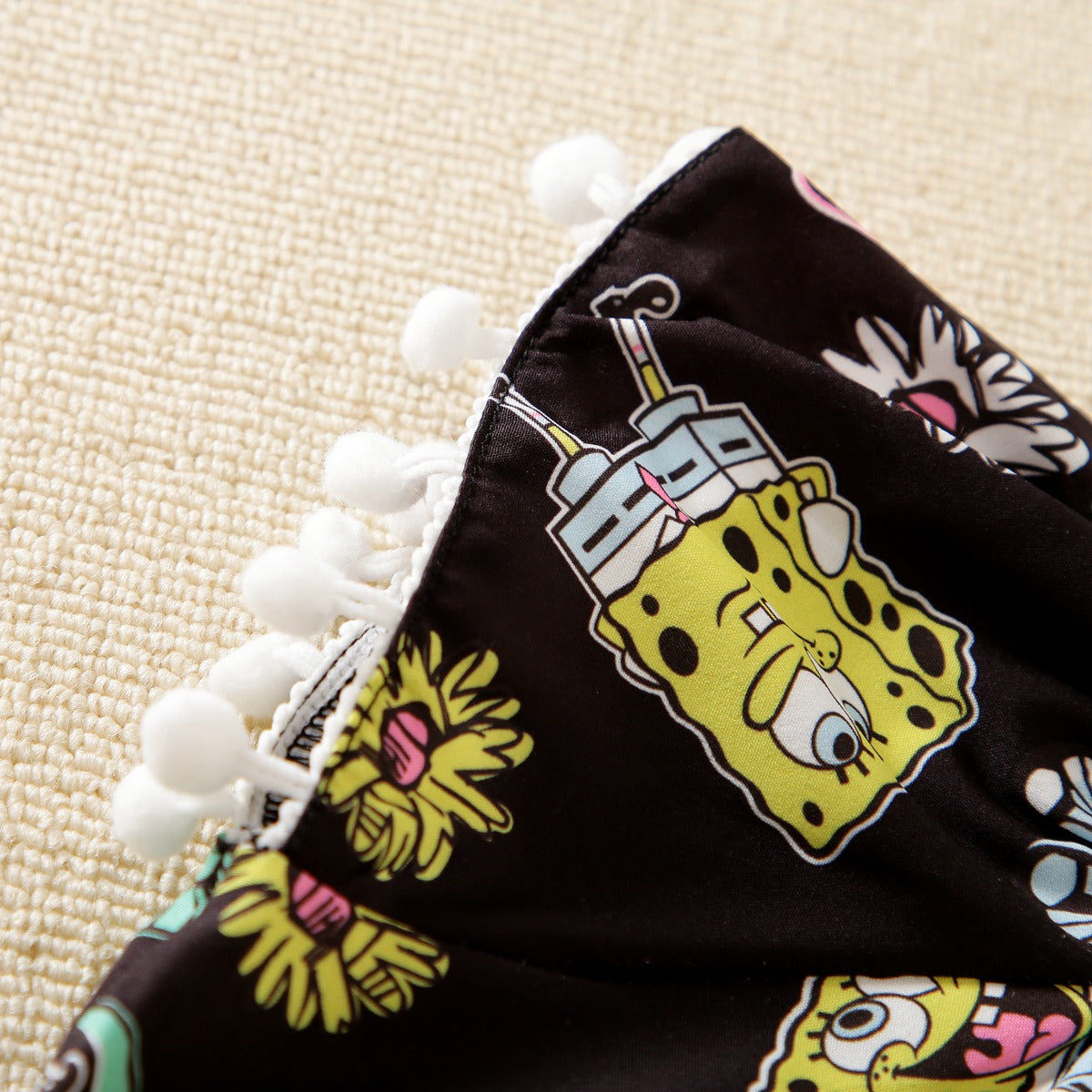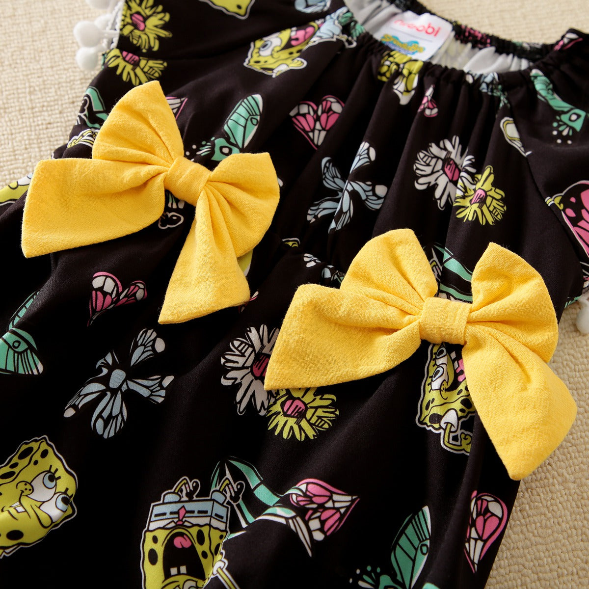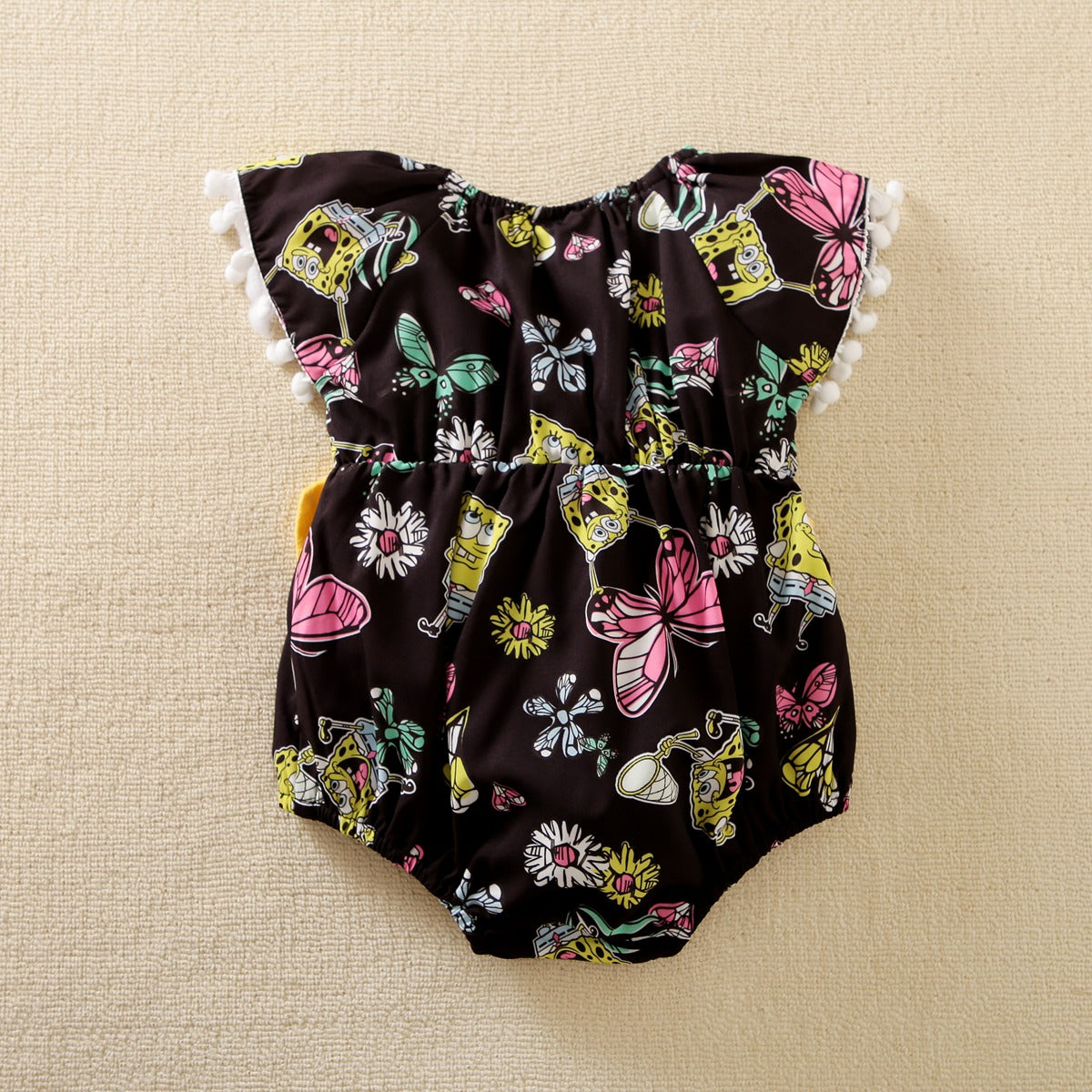 hibobi ×SpongeBob Baby Girl Cartoon Print Ruffle Short Sleeve Jumpsuit Wholesale