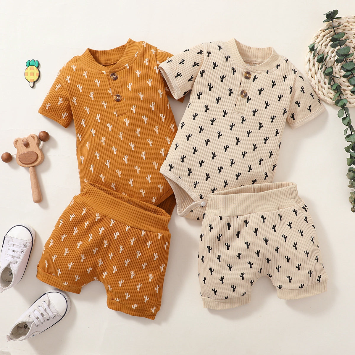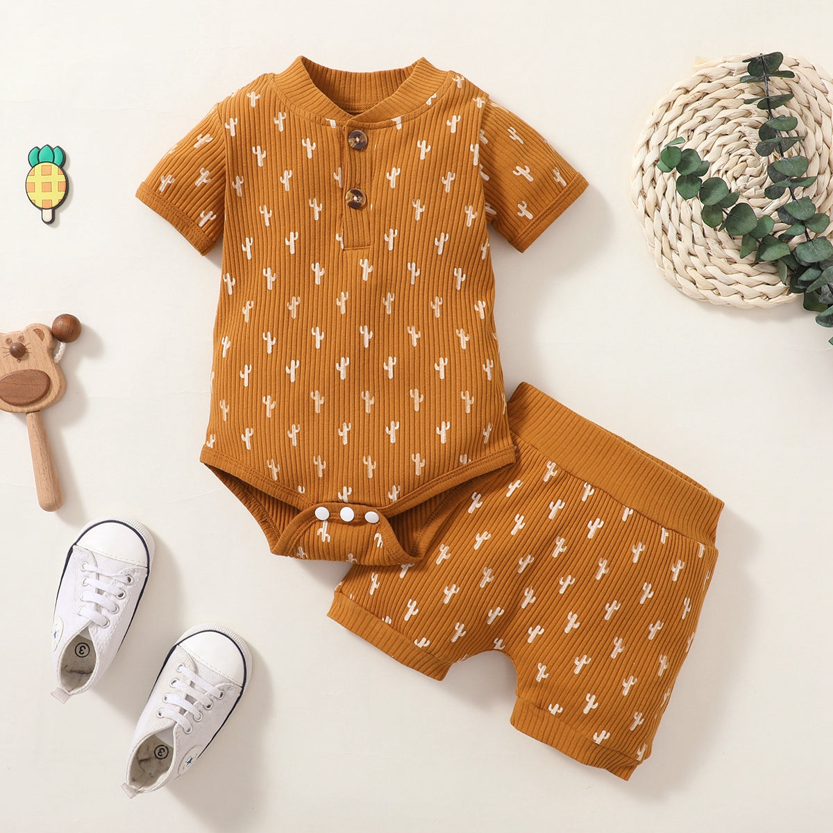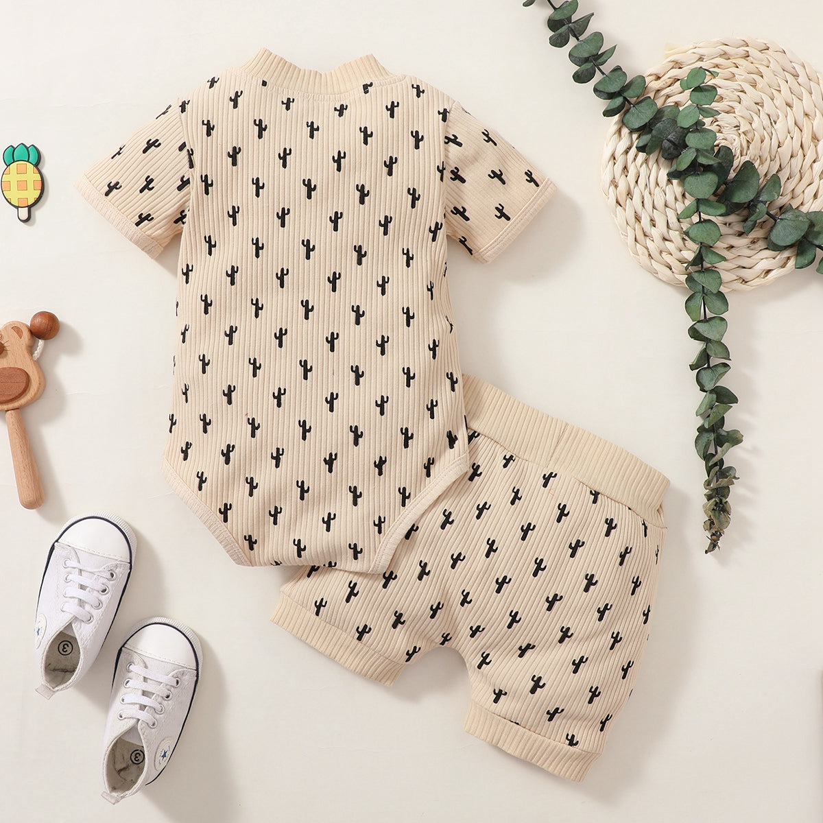 Baby Girl Cactus Print Bodysuit And Shorts Wholesale