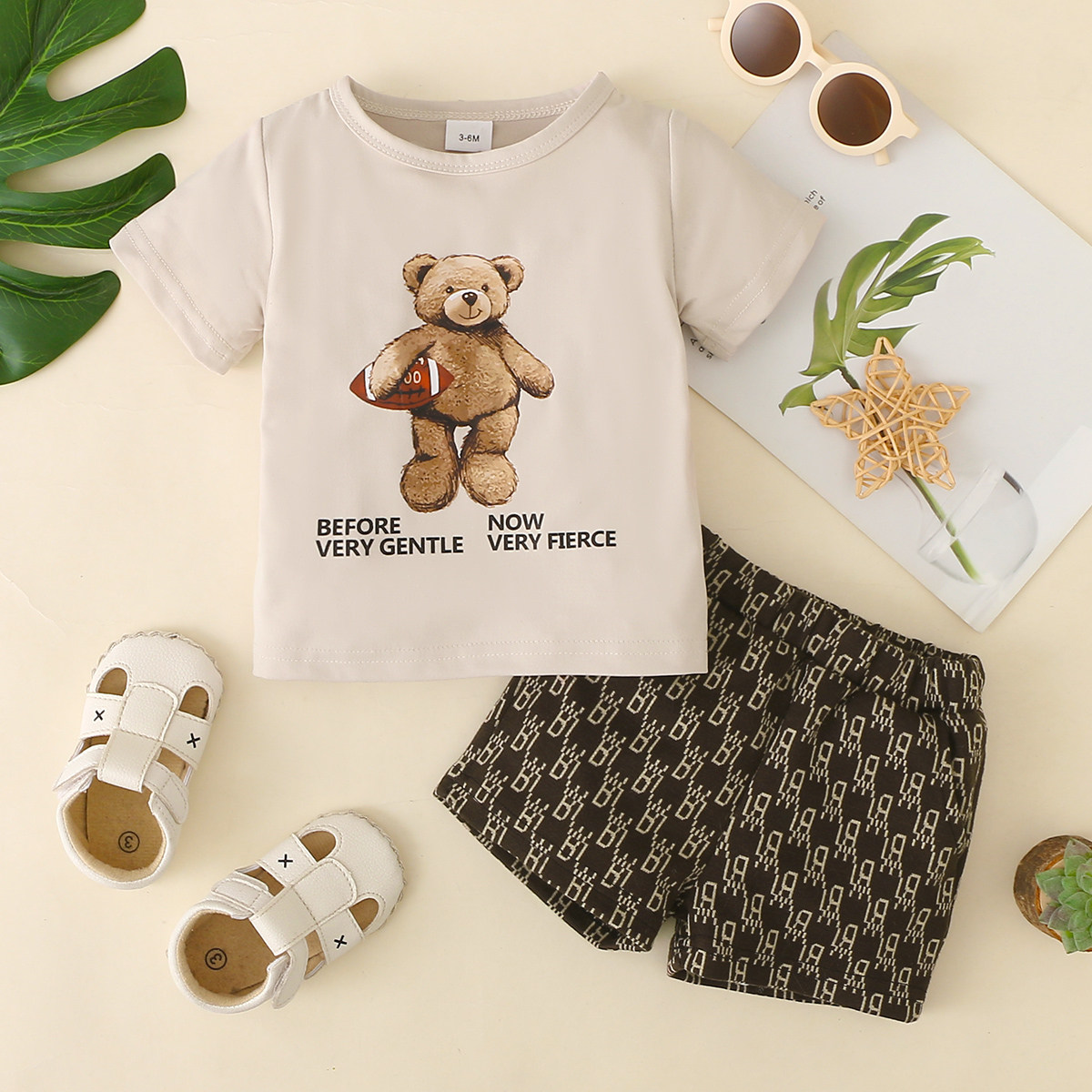 Baby Boy 2 Pieces Bear Letter Pattern T-Shirts & Monogram Pattern Shorts Wholesale