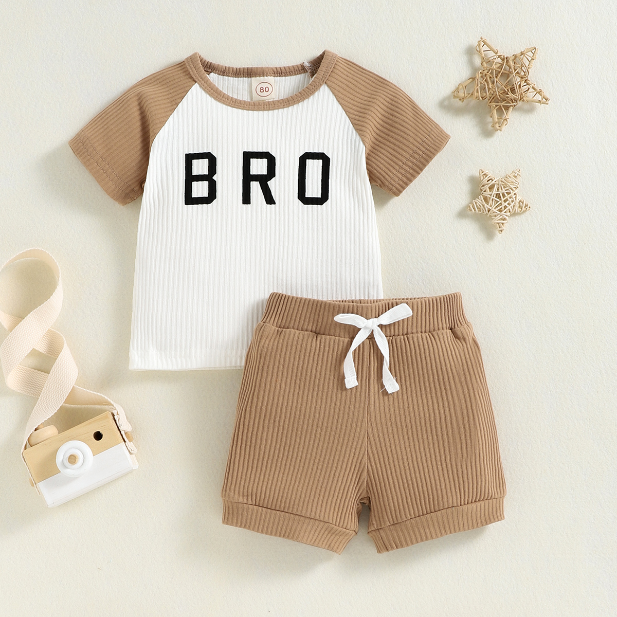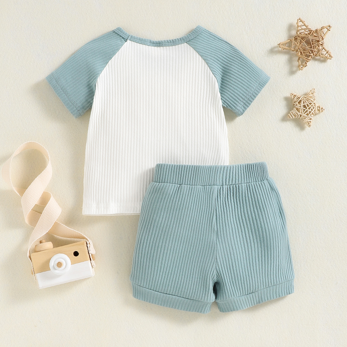 Baby Boy 2 Pieces Color-block Letter Pattern T-shirt & Solid Color Shorts Wholesale