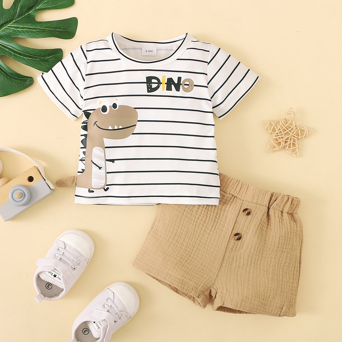 Baby Boy 2 Pieces Dinosaur Horizontal Stripes T-Shirt & Shorts Wholesale