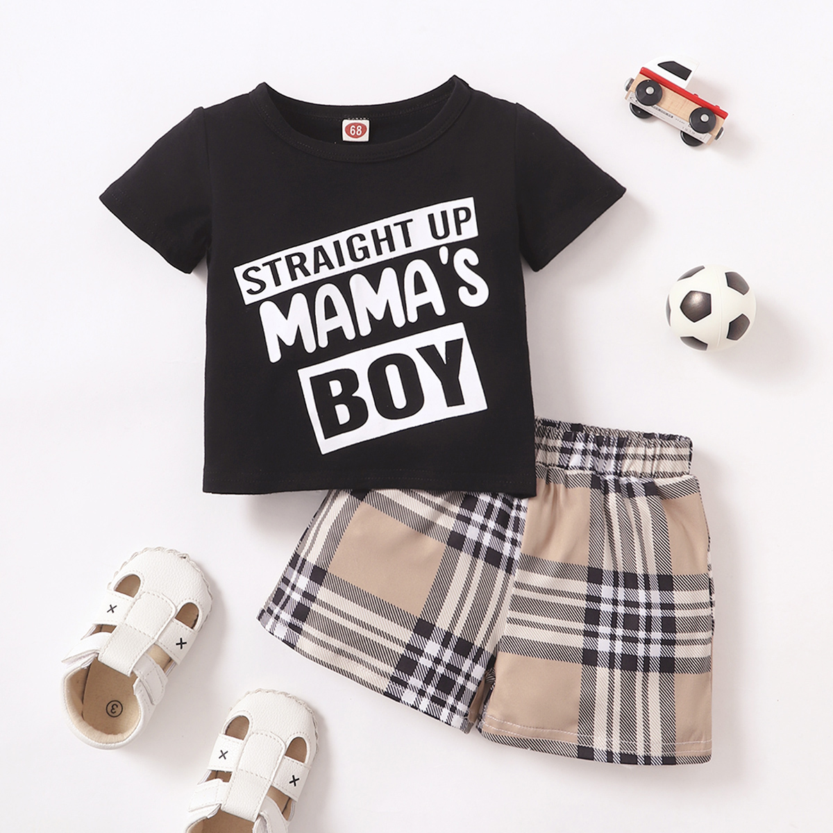 Baby Boy 2 Pieces Letter Pattern T-shirt & Plaid Shorts Wholesale