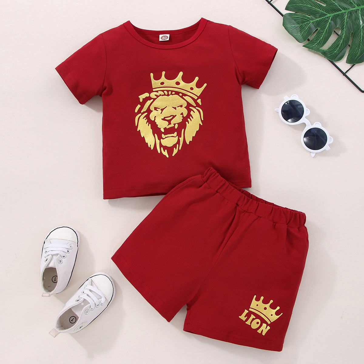 Baby Boy 2 Pieces Lion Crown Pattern T-shirt & Shorts Wholesale