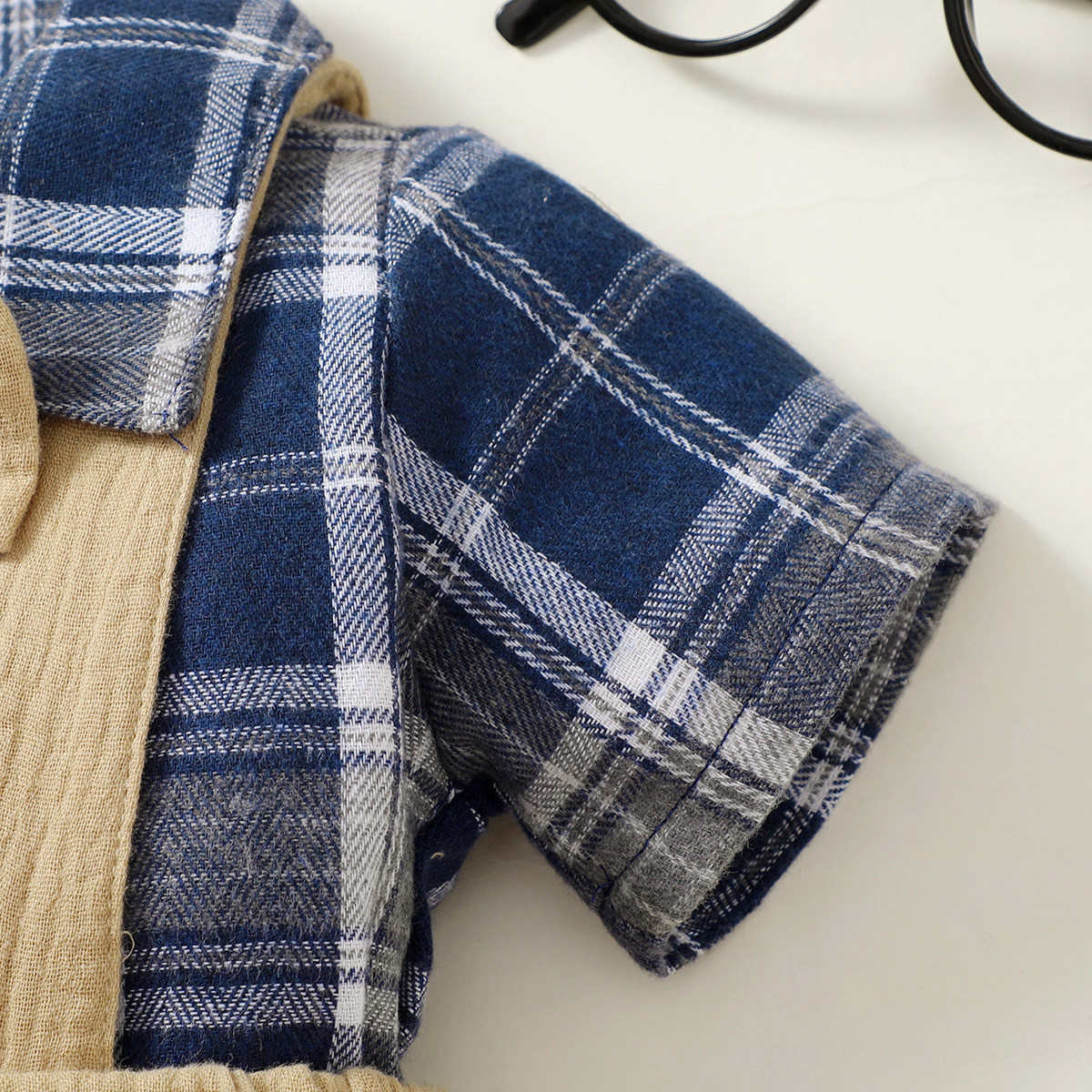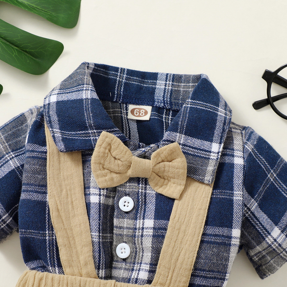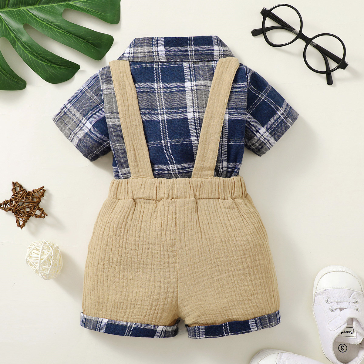 Baby Boy Gentleman Plaid Pattern Bow-knot Shirt & Suspender Shorts Wholesale