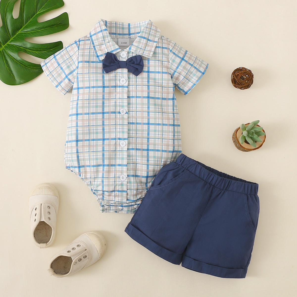 Baby Boy Plaid Bow-knot Bodysuit & Solid Color Shorts Wholesale