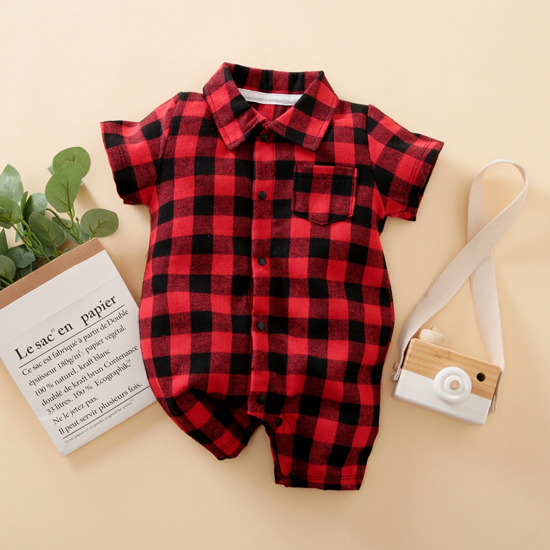 Baby Boy Plaid Short Sleeve Bodysuit Wholesale