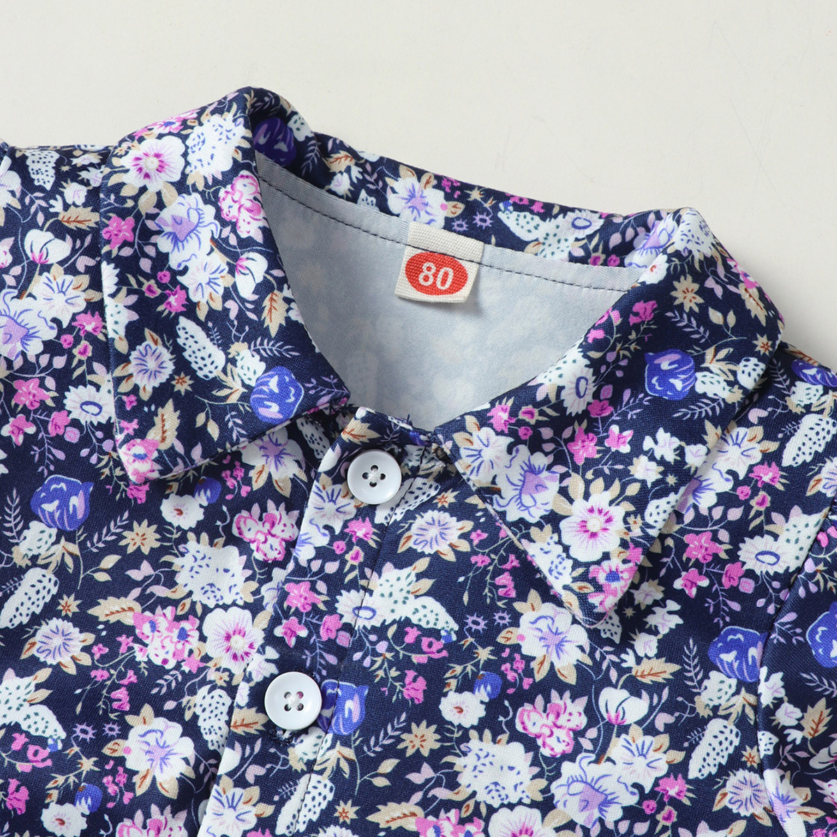 Baby Girl Floral Print Lapel Top And Polka dot Shorts Wholesale