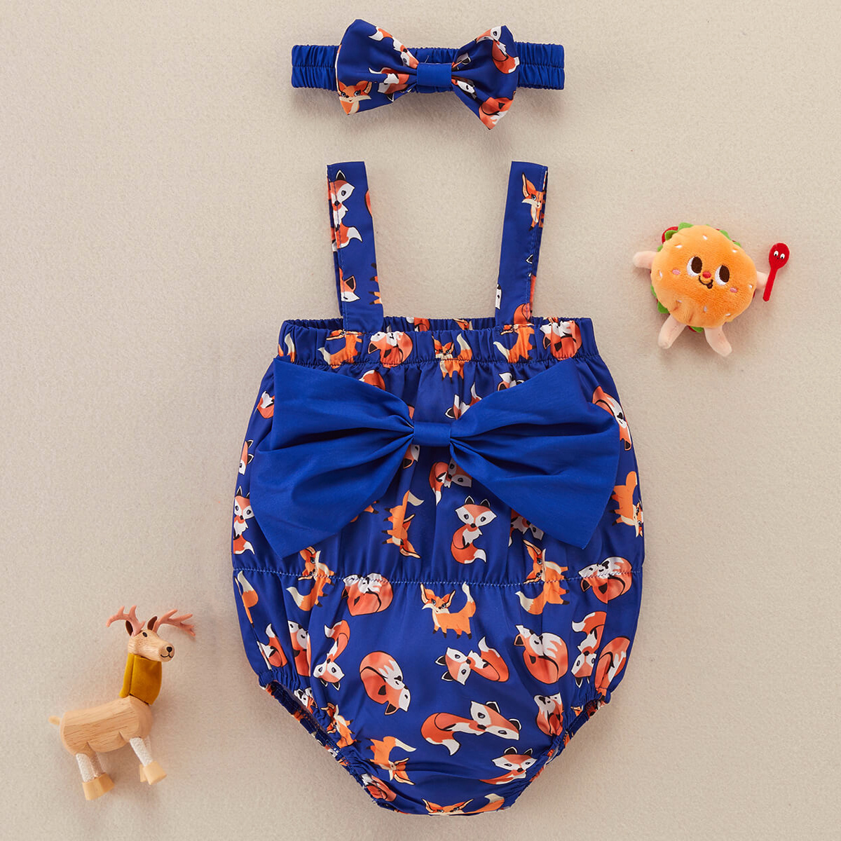 Baby Girl 2 Pieces Animal Fox Pattern Bow-knot Decor Bodysuit & Headband Wholesale
