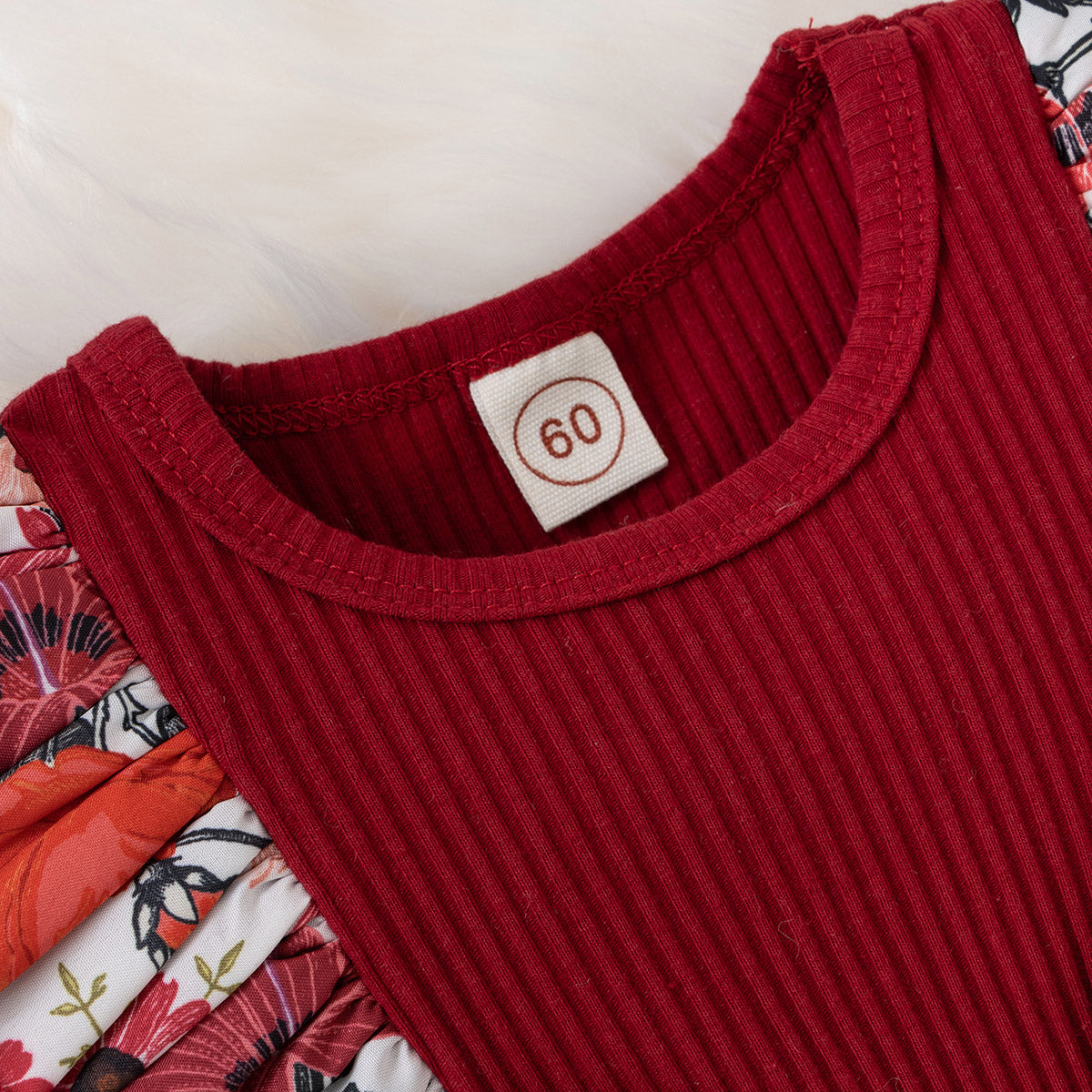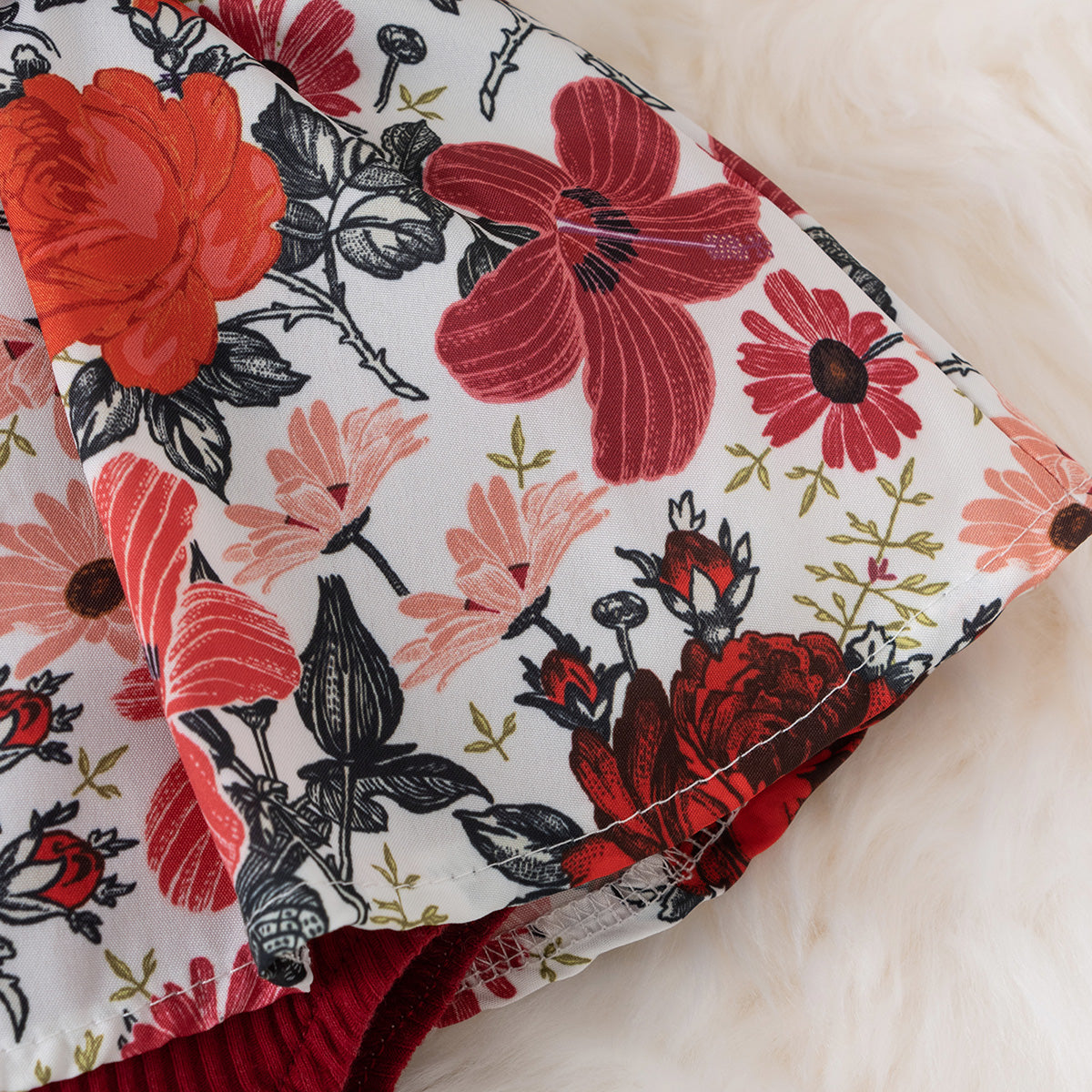 Baby Girl 2 Pieces Floral Pattern Ruffles Bow Decor Bodysuit & Headband Wholesale