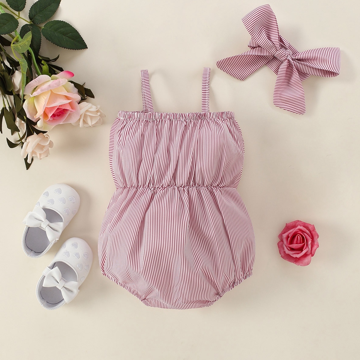 Baby Girl 2 Pieces Stripes Pattern Bow-knot Decor Bodysuit & Headband Wholesale