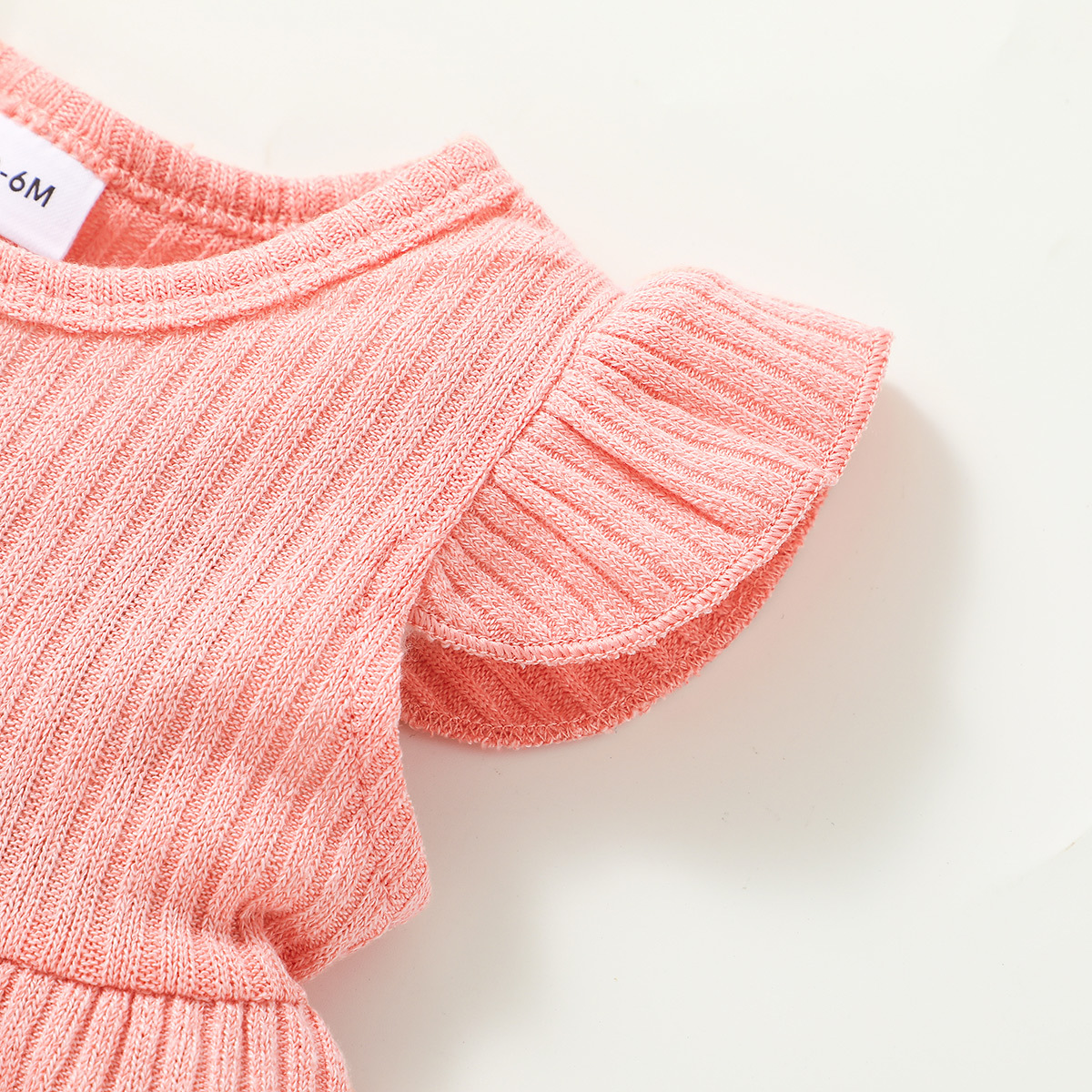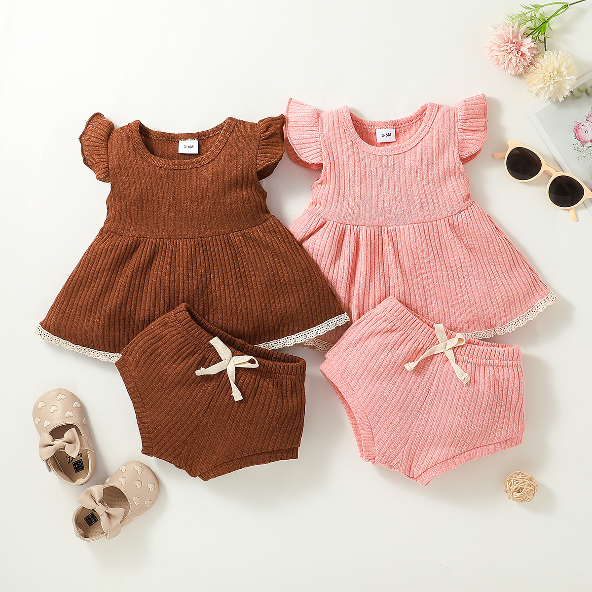 Baby Girl Beautiful Solid Colour Ruffle Sleeve Top And Shorts Wholesale