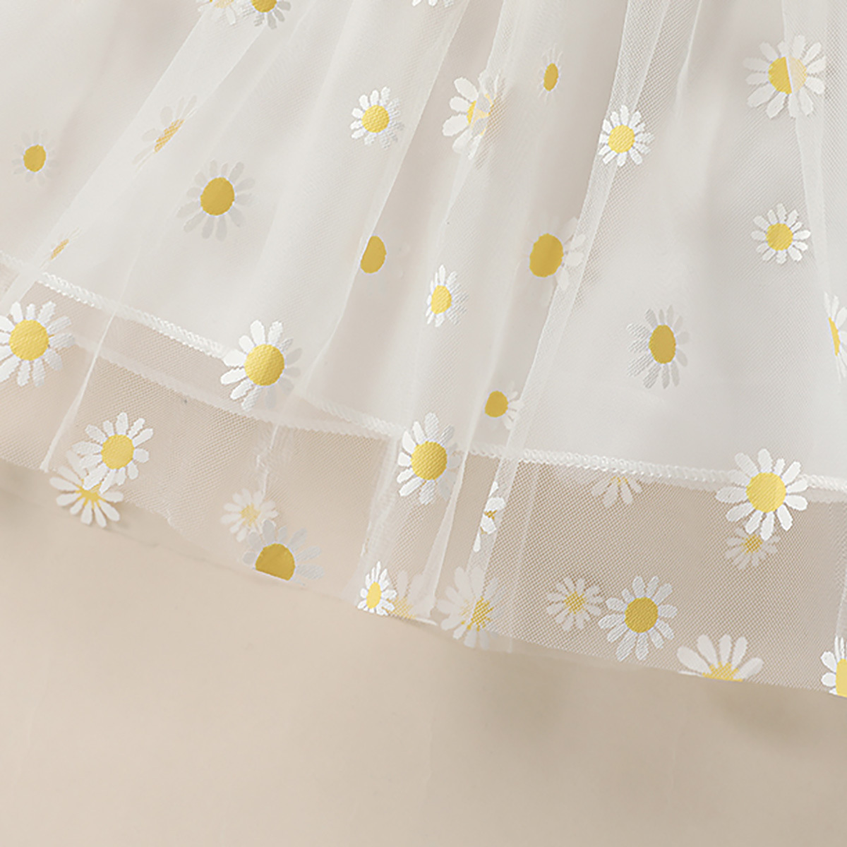 Baby Girl Beautiful Mesh Ruffle Sleeve Floral Print Dress with Headband Wholesale