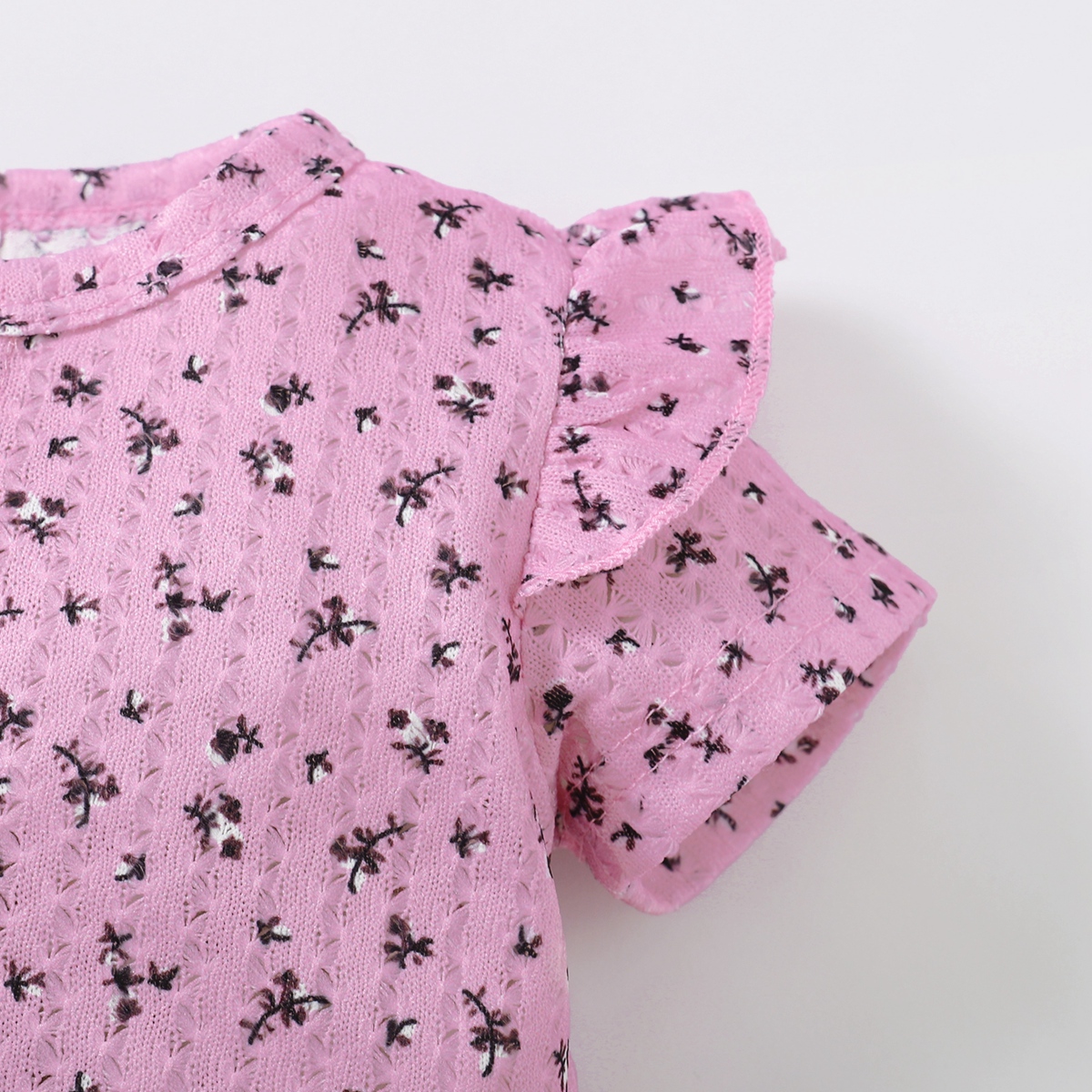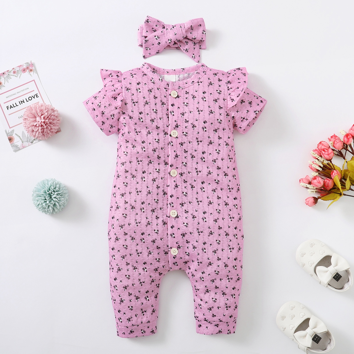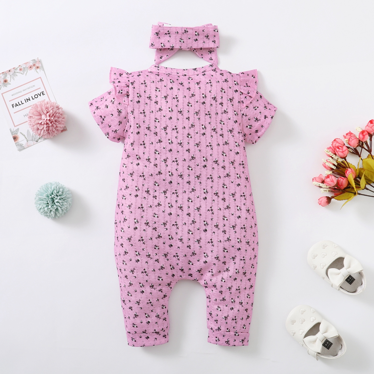 Baby Girl Beautiful Ruffle Floral Print Jumpsuits with Headband Wholesale